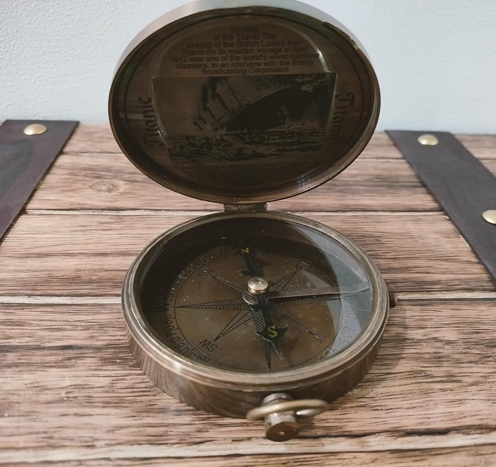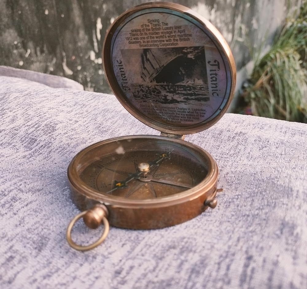 Compass Ground dial : 3" inches, Weight is 250 gram, Lid type compass with small lock to protect it life long. This compass made up of high quality solid brass material and it comes in antique finish. Elegant engraving so that once can read all the text written in and out