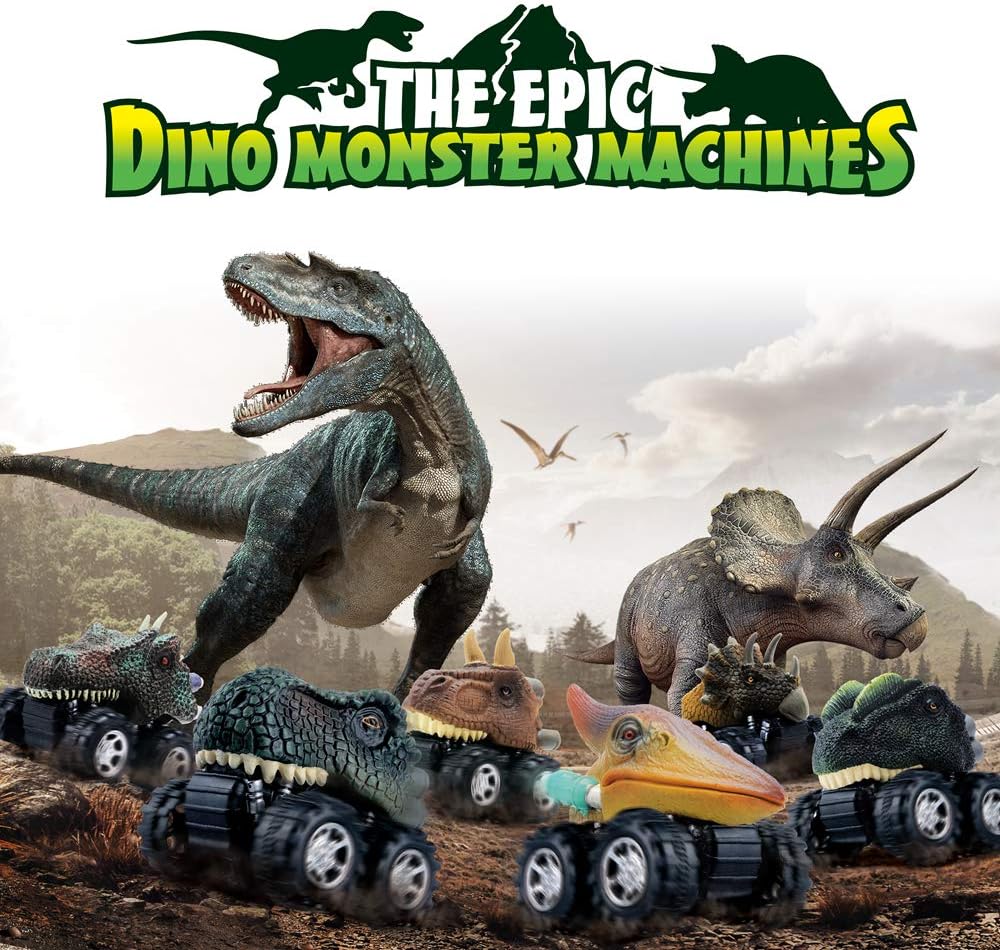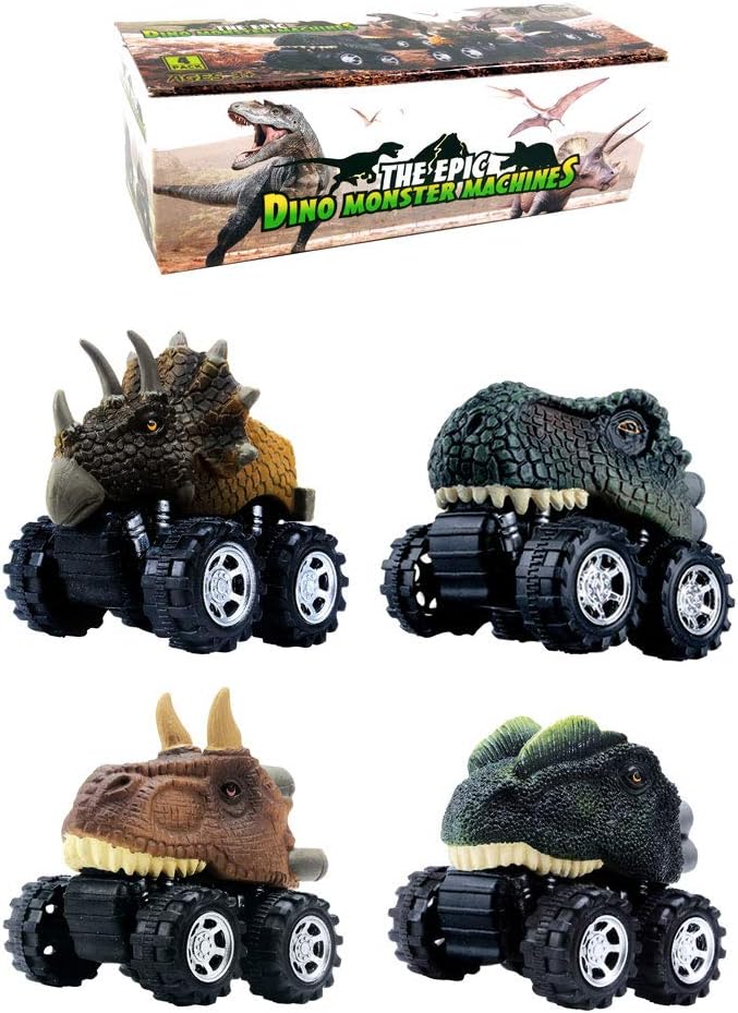 [سيارات السحب الخلفية دينوسار] في شكل شاحنة وحش، 4 سيارات صغيرة للديناصورات تسحب للخلف تتميز بتيراتوبس، وديلوفوسوروس وكارنوتوس. منتجاتنا