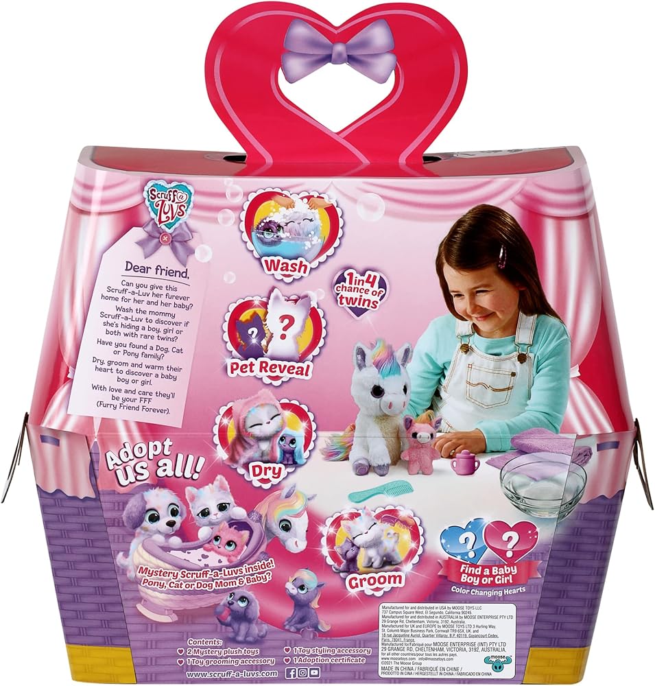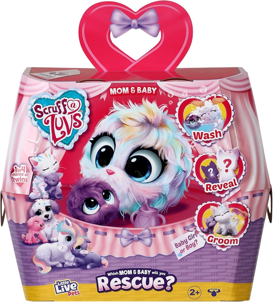 اكتشفي دمية سكراف ايه لوفز للأم والطفل ورضيع سكرافس لإنقاذهم ومنحهم منزلهم إلى الأبد. تحتاج هذه الحيوانات الأليفة الصغيرة المهجورة إلى حبك ومساعدتك. يوجد داخل الصندوق أم وطفل غامض ينتظران إنقاذه! ما هي دمية سكراف ايه لوفز للأم والطفل التي ستنقذها؟ هل ستجد عائلة سكراف ايه لوفز للكلاب أو القطط أو المهر؟ يصل حيوانك الأليف سكراف ايه لوف ككرة حزينة من الفرو غير اللامع، ولكن بمجرد أن تستحمه للكشف عن لون فرو قوس قزح الحقيقي الخاص به، يجف وينظف بالفرشاة ويحبه، ستكتشف أي نوع من الحيوانات الأليفة هو حقًا! هل ستجد طفلاً أو طفلاً؟ افرك ودفئ قلوب الأطفال الصغيرة لرؤية قلوبهم تتغير لونها لاكتشاف جنسهم. إذا كنت محظوظًا فقد تجد توأمًا نادرًا! تأتي كل أم وطفل سكراف ايه لوفز مع ملحق زجاجة الرضاعة الخاص بهم. يوجد أيضًا مشط جميل لك لمنح عائلتك الأليفة الجديدة جلسة تجميل لجعلها تبدو مميزة للغاية. بالإضافة إلى أن سكرف-ايه-لوف تأتي مع شهادة تبني لك لمنح عائلتك الجديدة اسمًا. امنح سكراف ايه لوف منزلًا محبًا واجعلها خاصة بك! مع الحب والعناية، سيكونون صديقك المفضل (فروي فريند للأبد).