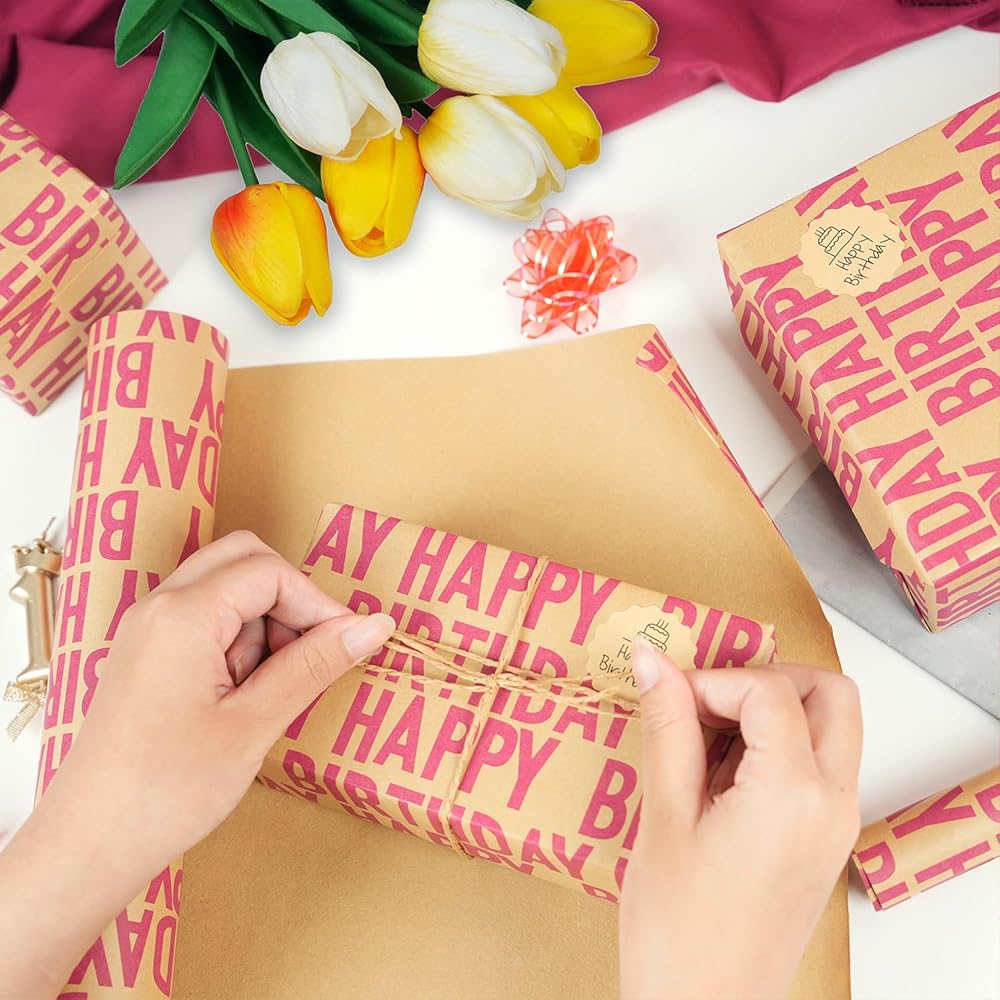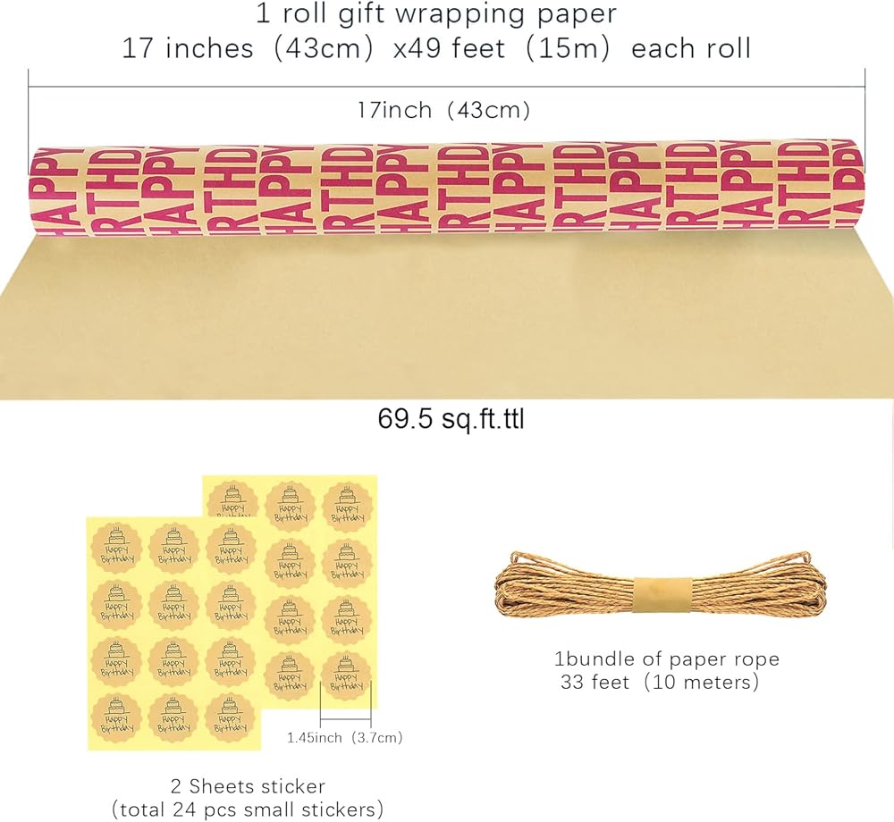 【استخدامات على نطاق واسع】: يمكن استخدام لفافة ورق تغليف الهدايا هذه في مناسبات أعياد ميلاد الجميع أو في مشروع تغليف حفلات استقبال المولود الجديد. كما أنه رائع للمشروعات اليدوية ولفائف الباقة