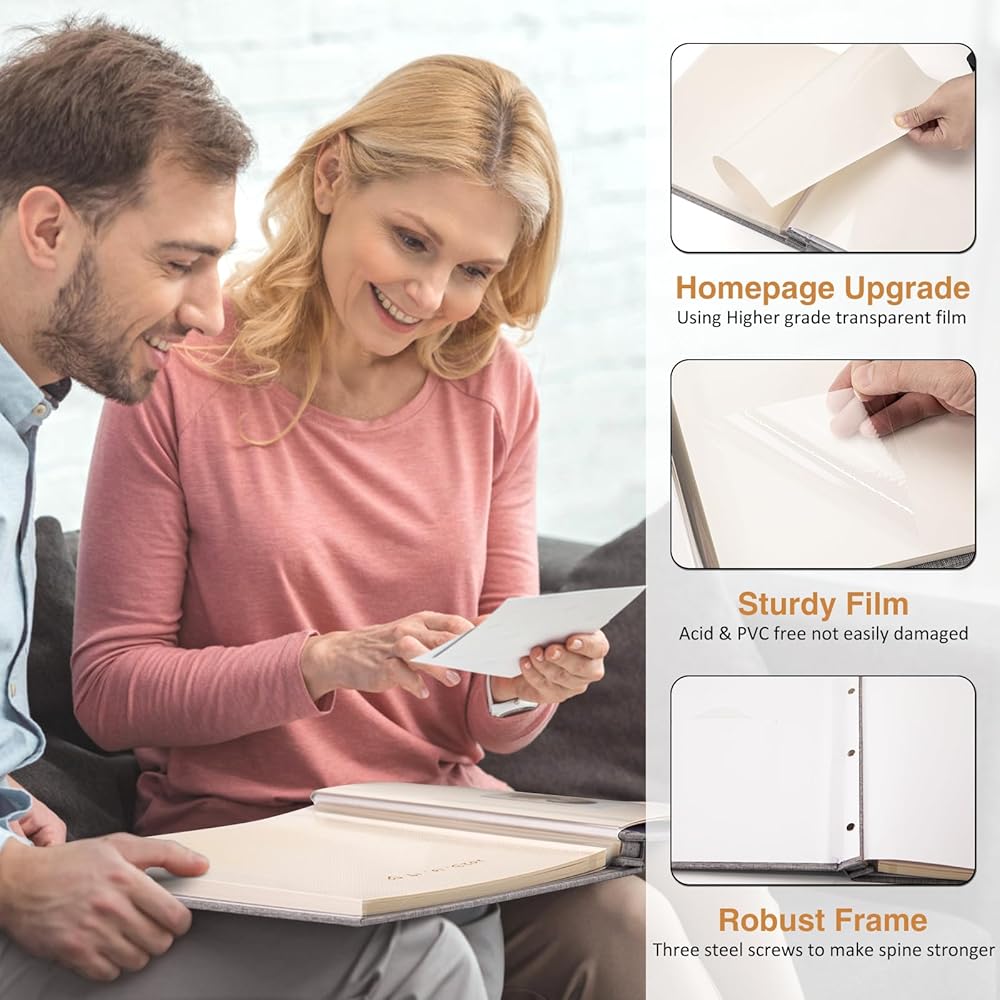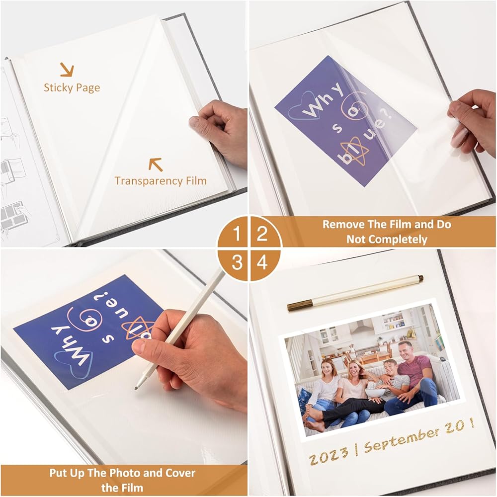 صفحات ذاتية اللصق خالية من الأحماض: ألبوم الصور الخاص بنا مصنوع من مواد خالية من الأحماض، مما يضمن عدم تلف صورك أو اصفرارها بمرور الوقت وستتم حمايتها لسنوات قادمة. تم تصميم صفحات الألبوم ذاتية اللصق للسماح لك بإرفاق صورك بسهولة دون أي لاصق أو شريط إضافي.