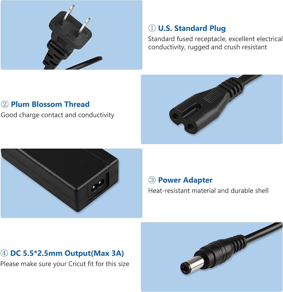 ⚡【الموثوقية】: يخضع سلك الطاقة Cricut لاختبارات متعددة لضمان الأمان والتوافر. نحن نضمن أن السلك البديل سيتم شحنه بكفاءة مثل الشاحن الأصلي. جميع أجهزة الشحن حاصلة على شهادة CE FCC RoHS مع حماية من الجهد الزائد، والحمل الزائد، والتيار الزائد، وحماية الدائرة القصيرة.