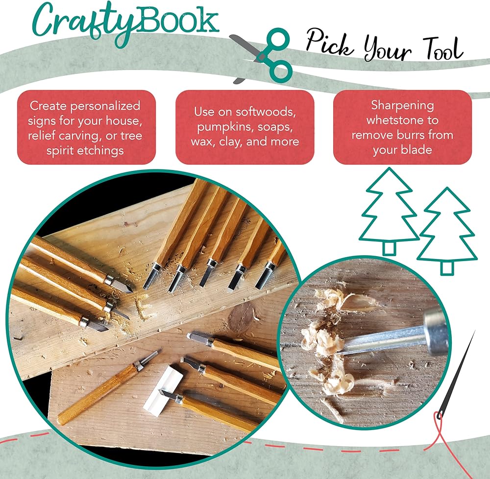مجموعة نحت الخشب من كرافت بوك - 12 أداة نحت الخشب مع حجر ويستون وجراب - من أجل خبراء أو المبتدئين