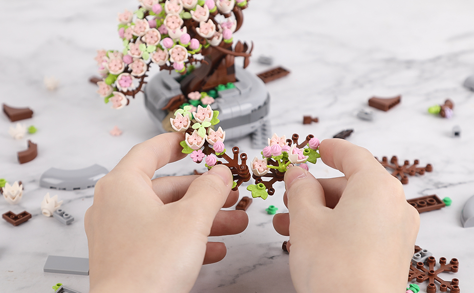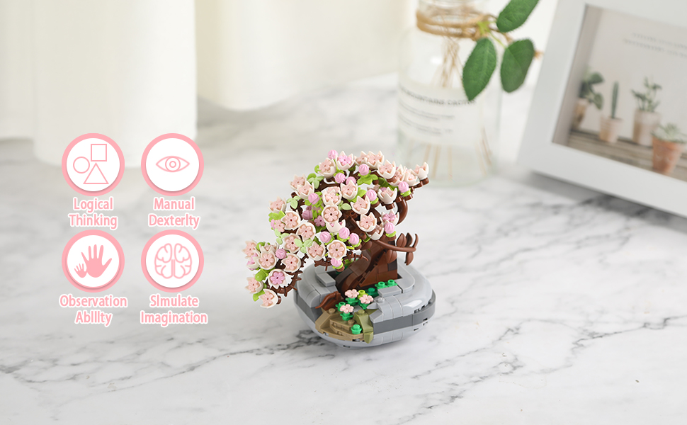 ☀ 【ديكور مبتكر】اجعل مجموعة البناء بمثابة شاشة عرض لمكتبك، أو كتابك، أو مكتبك، أو غرفتك. ضع شجرة ساكورا بونساي في أي مكان تريده.