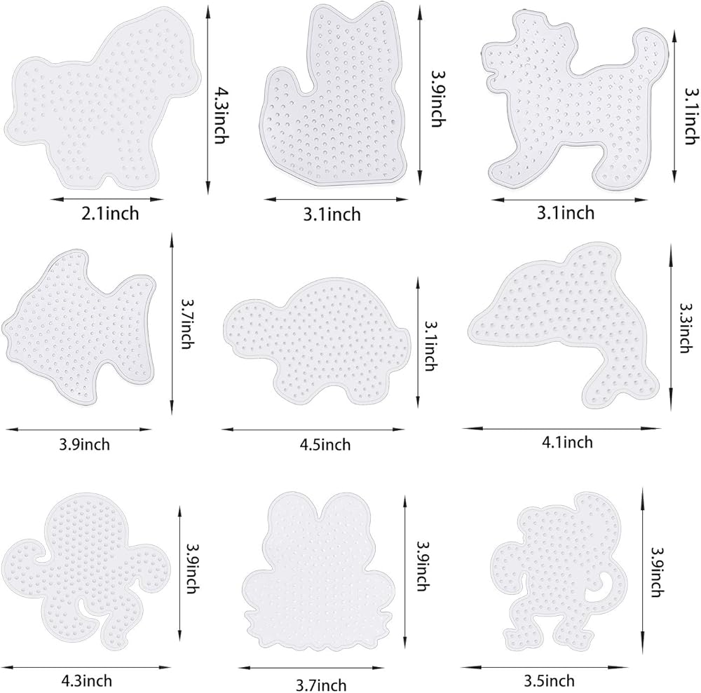 ميزة التصميم: 20 قطعة من ألواح الخرز المصهر تتضمن أشكال هندسية وحيوانات مختلفة مثل المربع، والدائرة، والنجمة، والزهرة، والقطة، والكلب، والأسماك، والفيل، إلخ. يمكن أن تمكنك قوالب لوحة الخرز هذه من عمل تصميمات دقيقة لجعل حرفتك تعمل بشكل أكبر. خلاقة ورائعة.