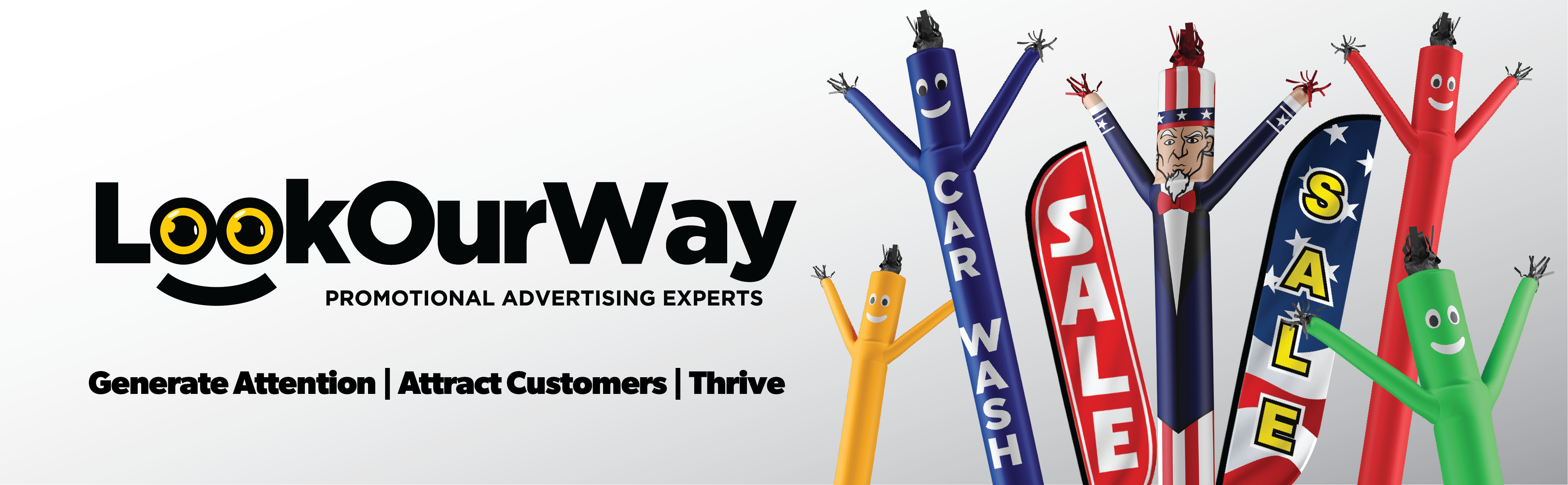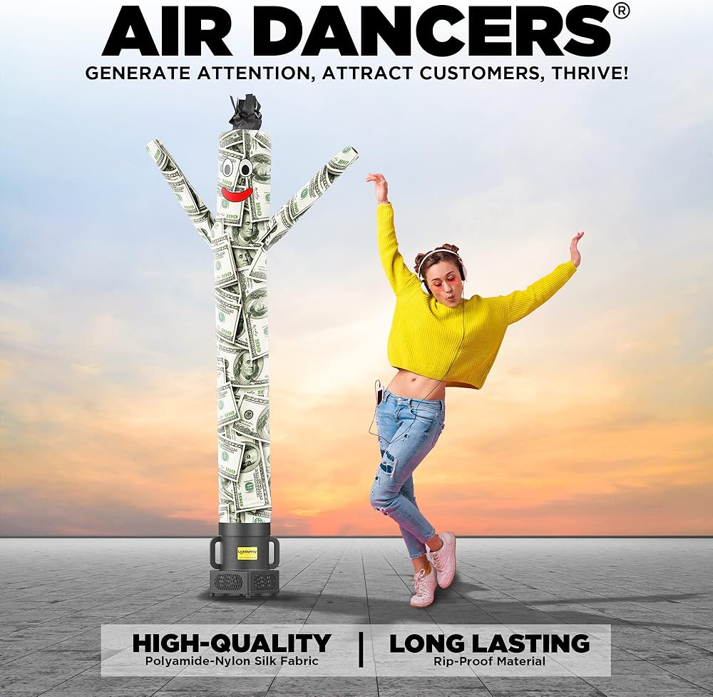 لقد كان الرجال الأنبوبي القابل للنفخ من Air Dancers يرقصون في جميع أنحاء البلاد لأكثر من عقد من الزمان! تجذب حركة التلويح الديناميكية والشعر المهدب والعينين والوجه المميز العملاء إلى عملك وتلفت الانتباه إلى كل ما تروج له. مع كل عملية شراء، سوف تحصل على ملحق رجل أنبوبي قابل للنفخ بطول 6 أقدام، ومنفاخ مقاوم للطقس بقطر 9 بوصات، ودليل تعليمات لتوصيل وتشغيل ملحق رجل الأنبوب القابل للنفخ مع المنفاخ. نحن نقدم راقصات هوائية مخصصة أيضًا! تفضل بزيارة متجرنا على أمازون وتحدث إلى أحد ممثلي خدمة العملاء لدينا. لدينا فريق موهوب من المصممين الداخليين الذين يمكنهم مساعدتك في إنشاء راقصة هوائية مخصصة مثالية لحدثك القادم أو مبيعاتك أو عروضك الترويجية. تعتبر Air Dancers مثالية للافتتاح الكبير، أو البيع الكبير، أو الحدث، أو الحفلة. تحظى بشعبية كبيرة بين تجار السيارات، وإصلاح السيارات، والخدمات الضريبية، والمالية، والعقارات، والأثاث، والمراتب، وغسيل السيارات، وتغيير الزيت، والوجبات السريعة، والمطاعم، والمقاييس عبر العديد من القطاعات الأخرى. إن راقصات Look OurWay الهوائية هي ببساطة أفضل قيمة وأفضل أسلوب وأفضل أداء. احصل على أنبوب Air Dancers® Wacky Waving القابل للنفخ اليوم!