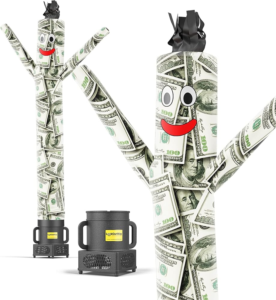 مجموعة أنبوب الرجل القابل للنفخ من Look OurWay Air Dancers - رجل أنبوبي راقص قابل للنفخ بطول 7 أقدام مع منفاخ مقاوم للطقس - موضوع مال شخصي - الملياردير