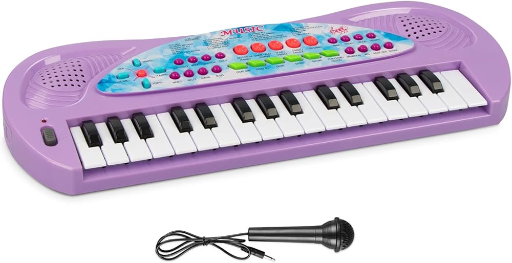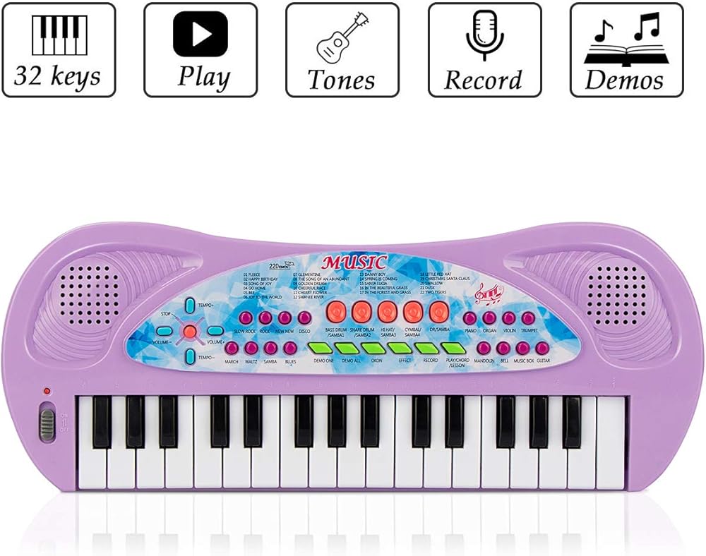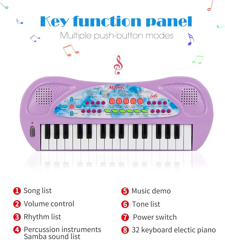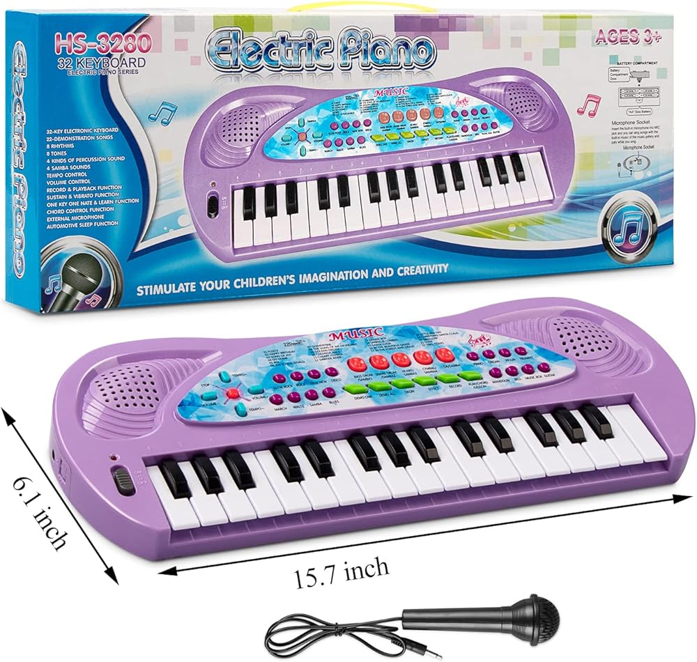 لوحة مفاتيح بيانو للأطفال 32 مفتاحاً من هوتويز مع ميكروفون لوحة مفاتيح إلكترونية محمولة للمبتدئين للألعاب الموسيقية بيانو لـ 3 4 5 6 7 8 سنوات للأولاد والبنات (أرجواني)