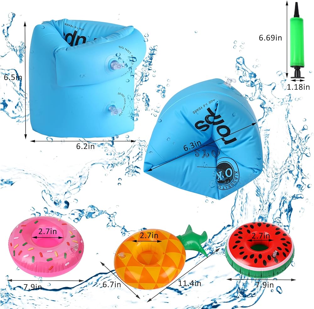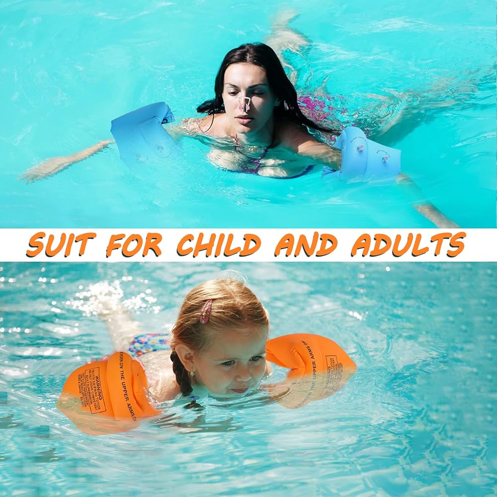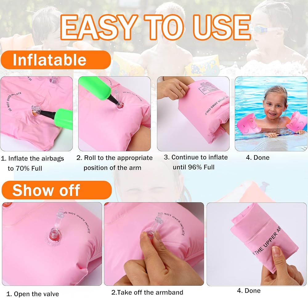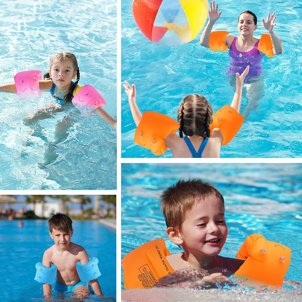 -6 أحزمة ذراع للسباحة قابلة للنفخ (وردي، أزرق، برتقالي).