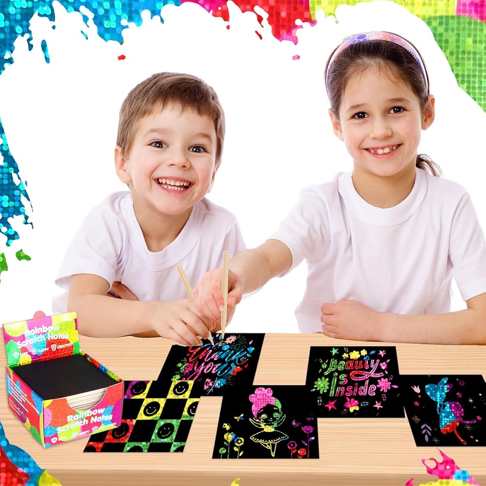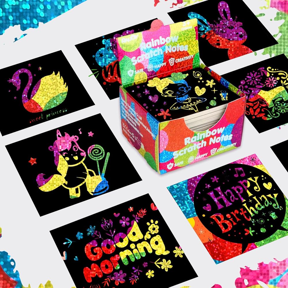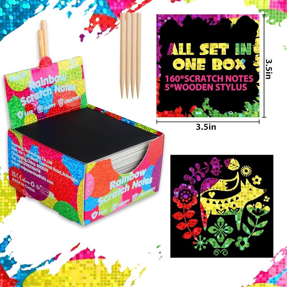 ملاحظات صغيرة لفن الخدش من RMJOY: 160 ورقة ثلاثية الأبعاد لخدش قوس قزح، بطاقة حرفية سحرية، مجموعة أدوات DIY لوازم الحفلات هدية للأطفال، مجموعة كبيرة من الأعمال الفنية للفتيات والصبيان وأعياد الميلاد والهالوين