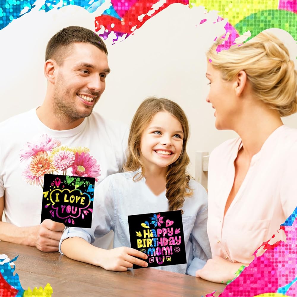 • 🎀🎉 لوحة ملاحظات ذات ألوان زاهية: 🌸باستخدام الأقلام المتضمنة، قم بخدش الطبقة السوداء بلطف وانغمس في إبداعك الفني المذهل الملون (اللامع). (لون لامع زاهٍ) تتضمن مجموعة متنوعة من الألوان، المزيد يمكن أن يعزز قدرة الطفل على إدراك الألوان، وممارسة خيال الدماغ والتنسيق بين اليد والعين، مما يسمح للأطفال بعدم وجود شاشة، للتفكير وإنشاء روائع مذهلة.