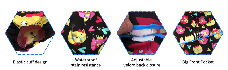 استخدامات واسعة: يمكن استخدام المرايل الفنية للأطفال في معظم المناسبات اليومية، مثل الرسم على الأطفال والطبخ والخبز والأنشطة الإبداعية الأخرى. كما أنها هدية مثالية للأطفال الذين يحبون الفنون والحرف اليدوية والأنشطة الترفيهية العملية.