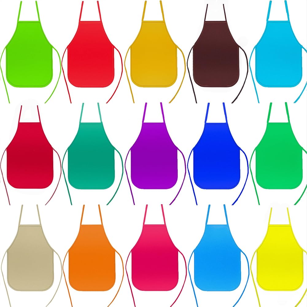 15 قطعة من مآزر قماش الفنانين للأطفال من Cptoion، مآزر رسم للأطفال بـ 15 لونًا، مآزر أطفال متوسطة الحجم للرسم، مآزر فنية للأطفال غير منسوجة للفصول الدراسية والمطبخ والحرف اليدوية ونشاط الرسم الفني