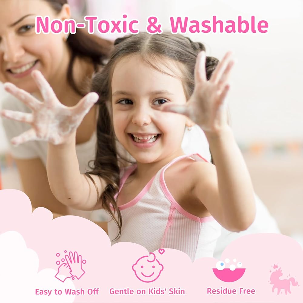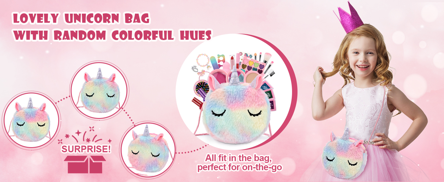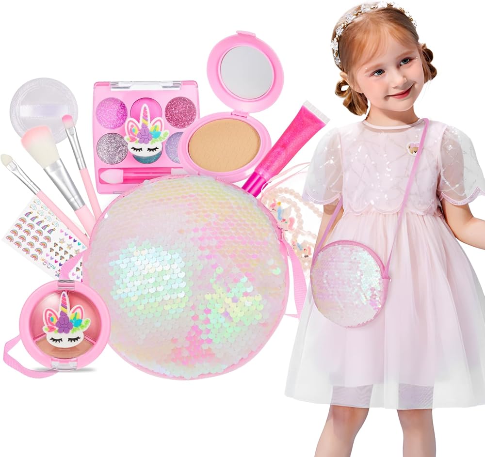 Washable make-up set: children's make-up is specially designed for children and is non-toxic and easy to clean, non-irritating and washable. Simply remove with water or soap and the make-up is washed off immediately. The toddler make-up set is completely safe and has been tested by the CPSIA, CPC, ASTM to meet the international standards for children's toys.
