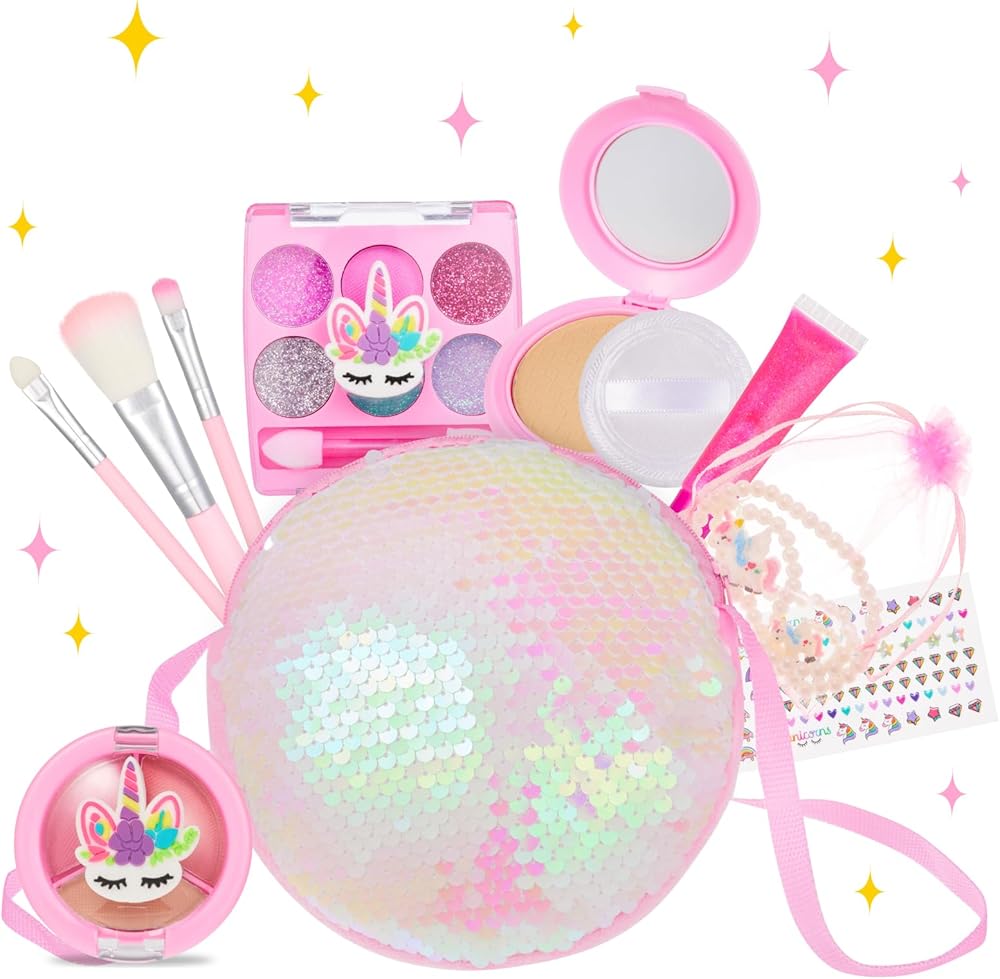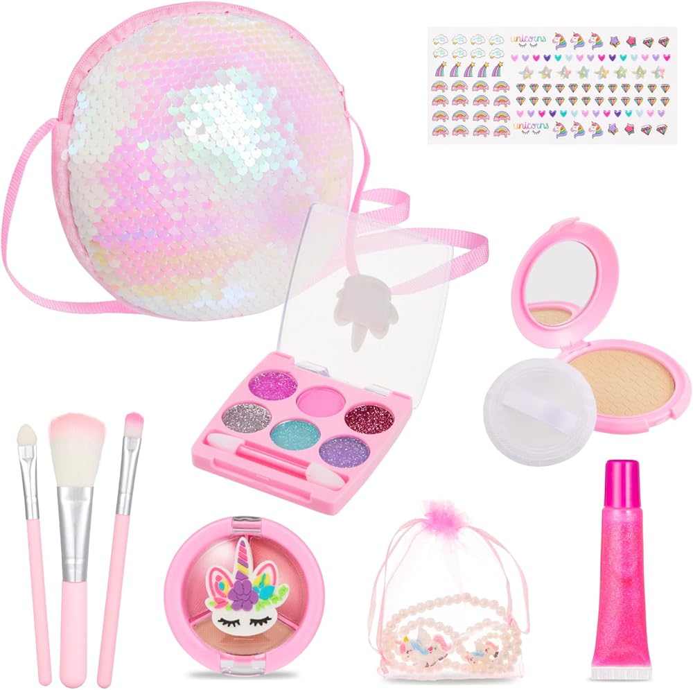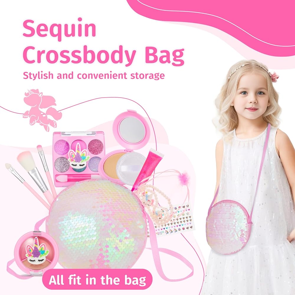 مجموعة مكياج للأطفال من أنبرو للفتيات - مجموعة مكياج قابلة للغسل - حقيبة كروس آمنة بالترتر، مجموعة مكياج حقيقية غير سامة للعب الأطفال، مجموعة مكياج للأطفال من عمر 3 إلى 4 سنوات، ألعاب أدوات مكياج حقيقية للأطفال الصغار