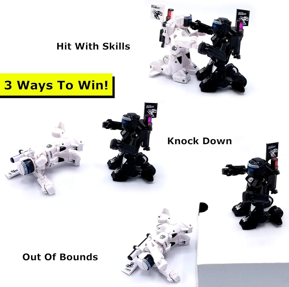 3 طرق للفوز: باستثناء الضرب 5 مرات لخصمك، هناك طريقتان أخريان للفوز؛ هدم وخارج الحدود. قم بضرب خصمك حتى يسقط الروبوت الخاص به أو العب في ساحة المعركة واضرب خصمك! لعبتك، قواعدك! ألعاب تفاعلية رائعة لحفلات أعياد الميلاد والتجمعات العائلية ولعبة الشرب... لجميع المناسبات!
