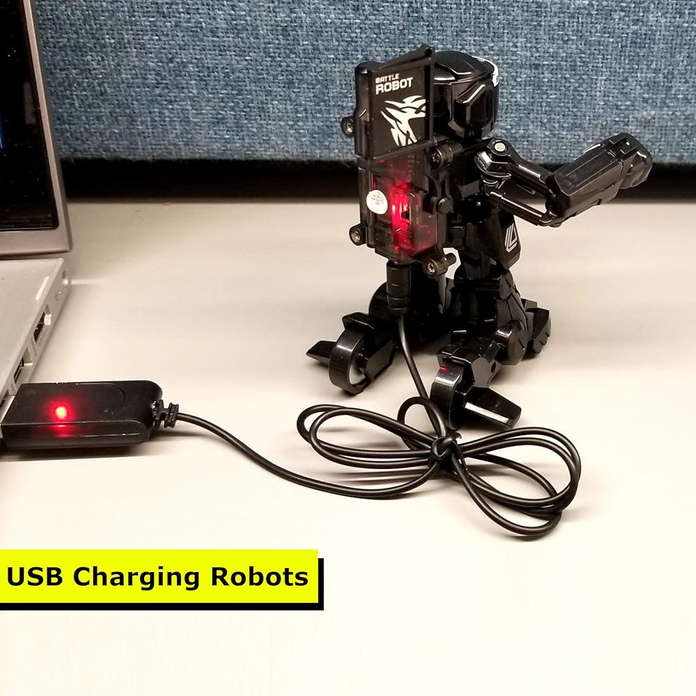 هدية رائعة لجميع المناسبات: تتضمن العبوة 2 روبوت معركة ولافتتين ومجموعتين من أجهزة التحكم عن بعد اللاسلكية وسلكين USB ودليل تعليمات. 4 بطاريات ايه ايه ايه (غير متضمنة) لكل مجموعة إرسال وإعادة شحن USB للروبوتات الصغيرة القتالية؛ شحن لمدة 25 دقيقة لتشغيل لاسلكي لمدة 25 دقيقة. يتوفر جهاز الإرسال 2.4 جيجاهرتز في وضعين للعب: التحكم بإحساس الإيماءات أو جهاز التحكم عن بعد؛ يمكنك هزه أو الضغط على الأزرار للتحكم في الروبوت.