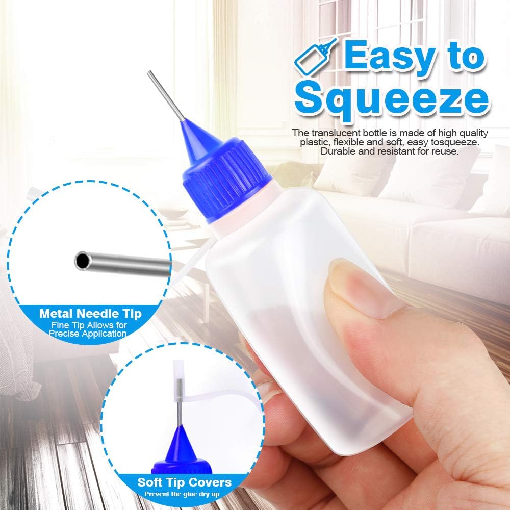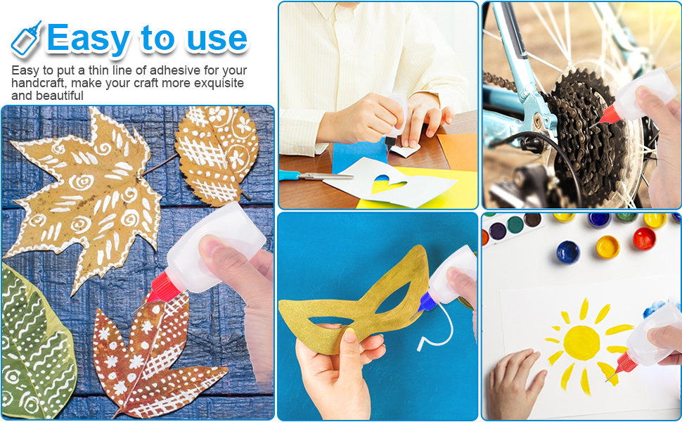 سهلة الاستخدام: مصنوعة من البلاستيك المرن، زجاجات وضع الغراء 50 مل يمكن أن تحمل المزيد من السوائل، سهلة الضغط، تجعل العمل اليدوي سهلاً للغاية. قابلة لإعادة الاستخدام لعدة مرات.