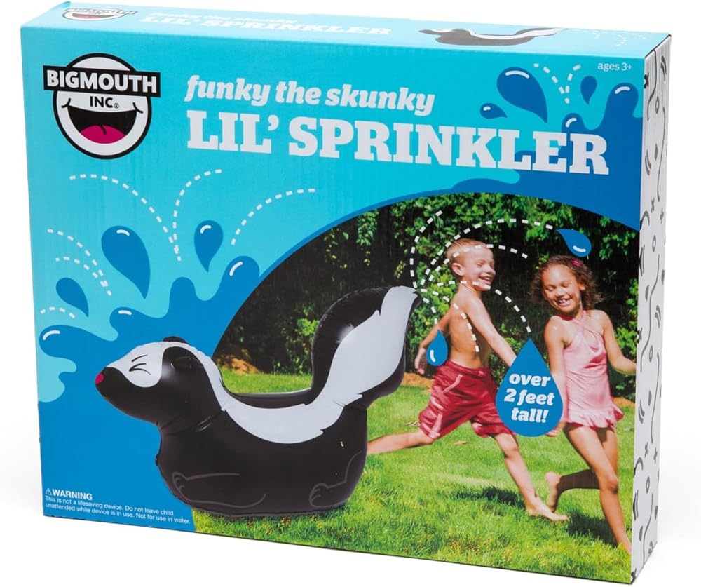 رشاش مياه كبير من شركة بيغ ماوث فانكي ذا سكنكي ليل سبرينكلر قابل للنفخ بطول أكثر من 2 قدم ومثالي للحفاظ على برودة الأطفال في حرارة الصيف.