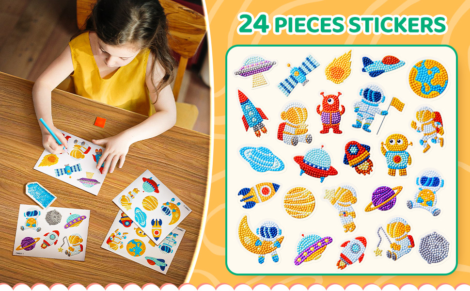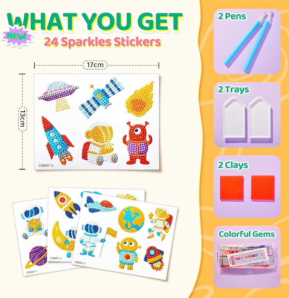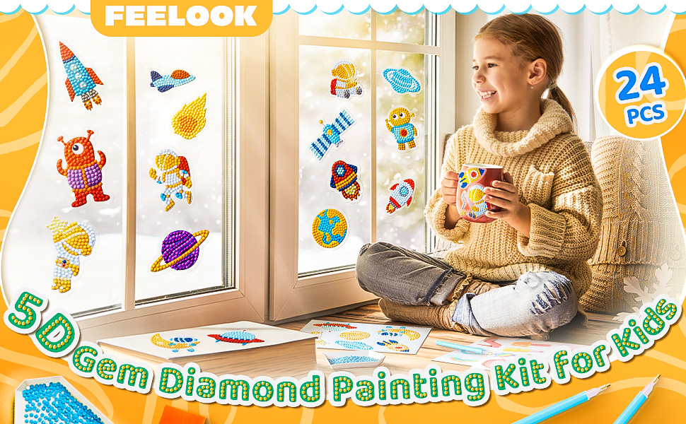 FEELOOK مجموعات الرسم الماسي للأطفال 24 قطعة من ملصقات الرسم الماسي فن الماس للأطفال جوهرة الفن والحرف اليدوية للأطفال الذين تتراوح أعمارهم بين 4-12 5D DIY الماس الفسيفساء ملصق الأولاد