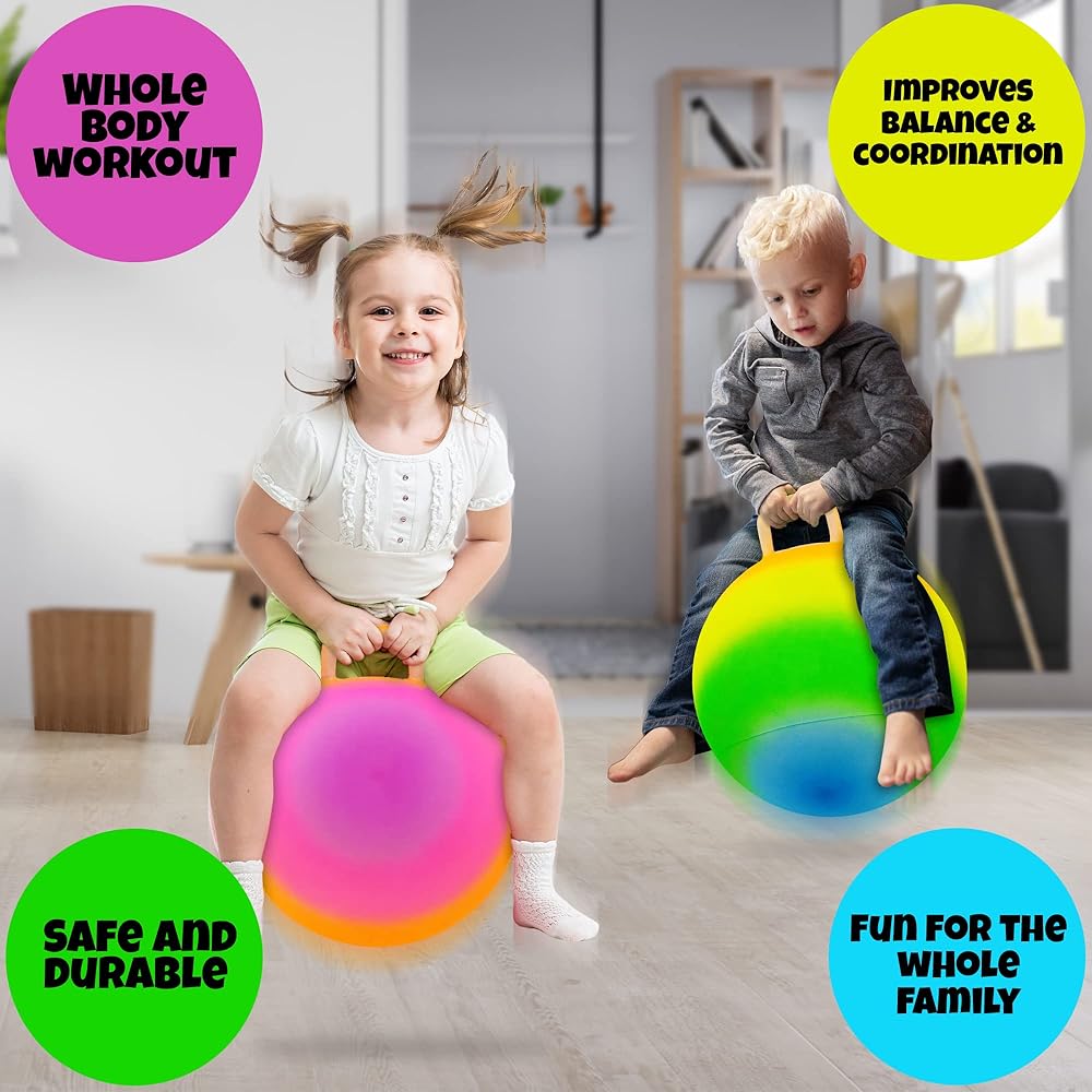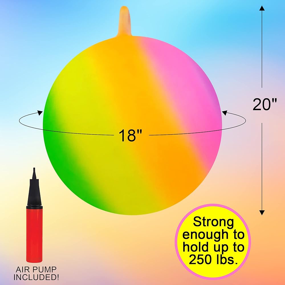 THE ULTIMATE HOPPER: A glee-inducing hopper that's all about whole-family fun! Usher this 18” bouncing ball with handle into your home and watch it transform slow, dull days into a laughter-filled affair. The size makes it great for kids. Get a couple and sync the smiles.