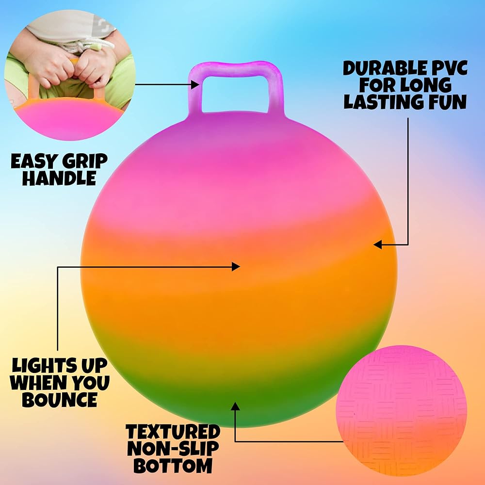 MADE FOR SAFETY: Rest easy, all that bouncing and hopping won't compromise your peace of mind. We've designed our light-up hopper ball with a tough handle, sized with little hands in mind. Get a good hold, engage your legs, and laugh in gravity's face.