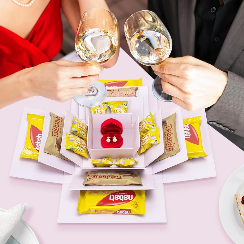 【عالية الجودة】صناديق هدايا التعشيش هذه ذات الأغطية وصندوق الهدايا المتفجر مصنوعة من لوح صلب عالي الجودة، وهو قوي وموثوق ومتين وقابل لإعادة الاستخدام. يمكنها حماية الهدية بشكل فعال من الضغط عليها.