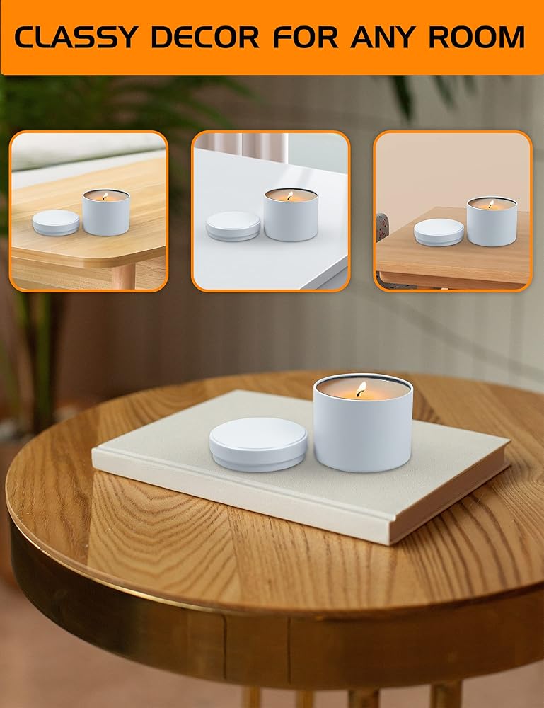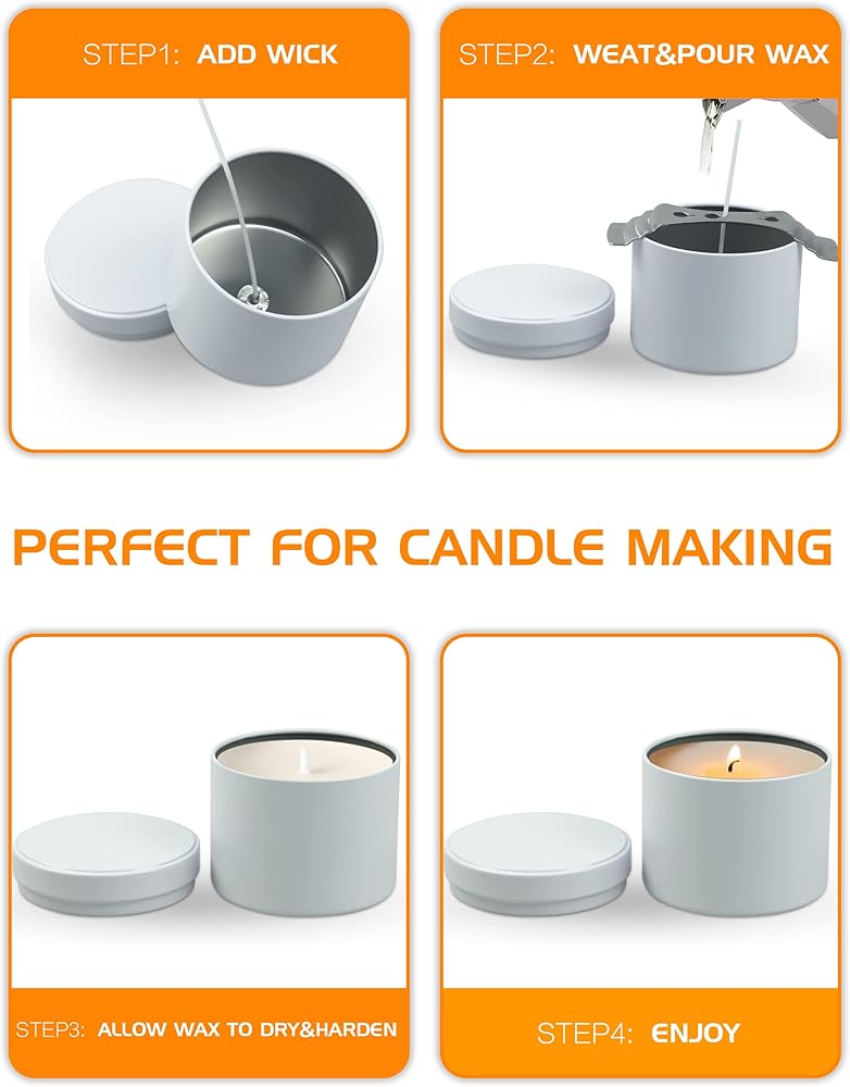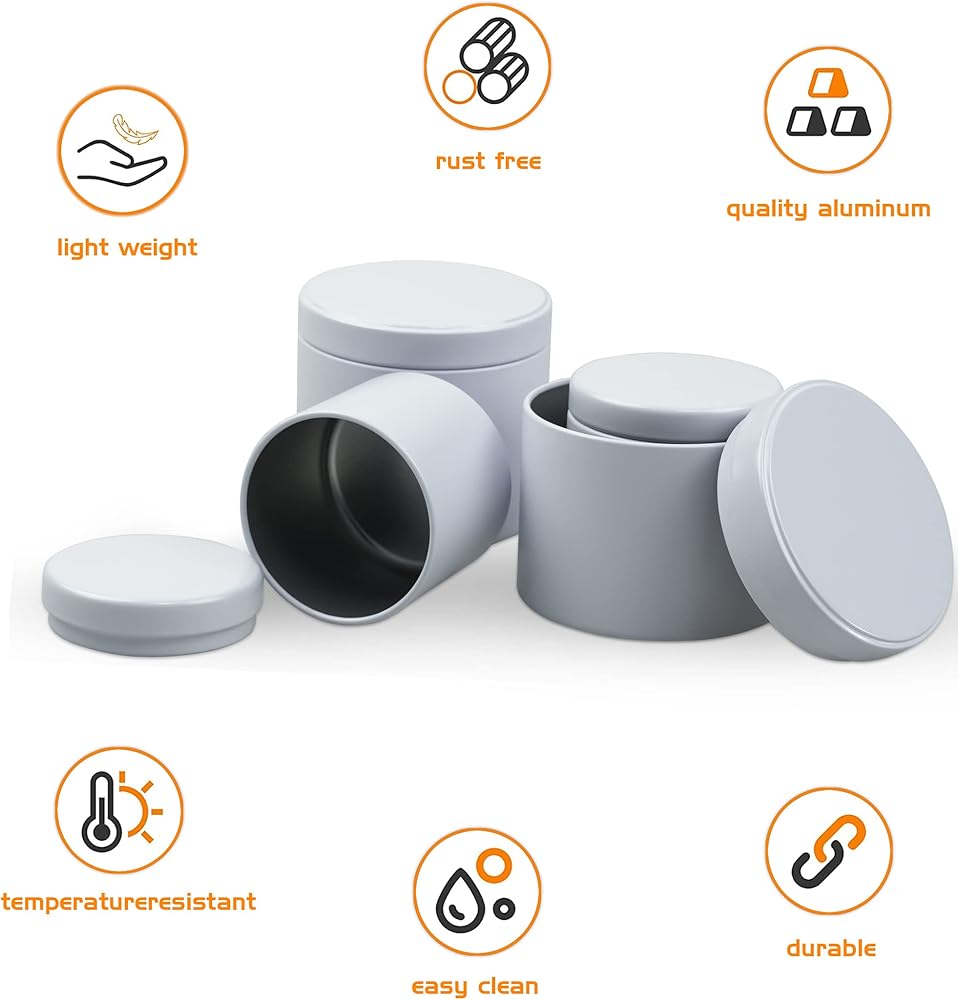 • سهلة الحمل: تأتي علب الشموع بغطاء. يستخدمها الكثير من صانعي الشموع كعلب سفر لأنها متينة للغاية، ولا تشغل مساحة كبيرة في حقيبتك أثناء السفر، وتقدم هدايا رائعة ومفضلات لحفلات الزفاف والاستحمام وغيرها من المناسبات.