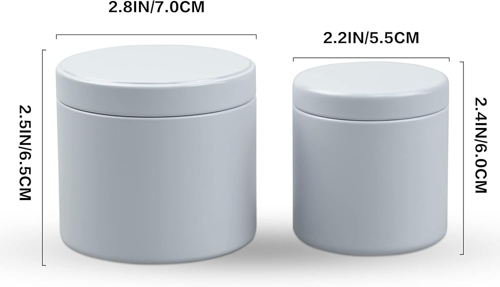 • السعة: 5 أونصة = 150 مل، الأبعاد: 2.8 بوصة (القطر) × 2.5 بوصة (الارتفاع)؛ 3oz = 90 مل، الأبعاد: 2.2 بوصة (القطر) × 2.3 بوصة (الارتفاع)، كل علبة شمعة مصنوعة من صفيح عالي الجودة وغير ملحوم.