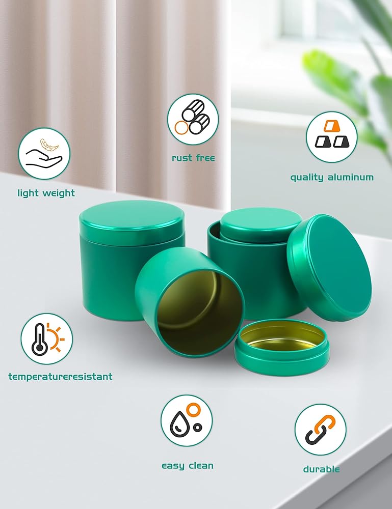 • حاوية تخزين رائعة للمشروعات اليدوية وغيرها من الأشياء الصغيرة: بالإضافة إلى صناعة الشموع، يمكن استخدام هذه العلب كحاويات تخزين يدوية للشاي والأعشاب والتوابل والحلويات وأكثر من ذلك بكثير.