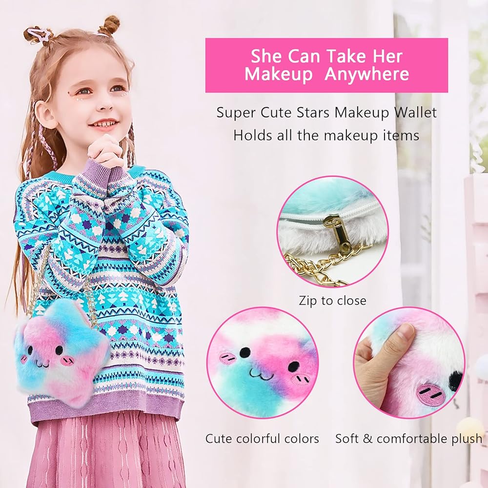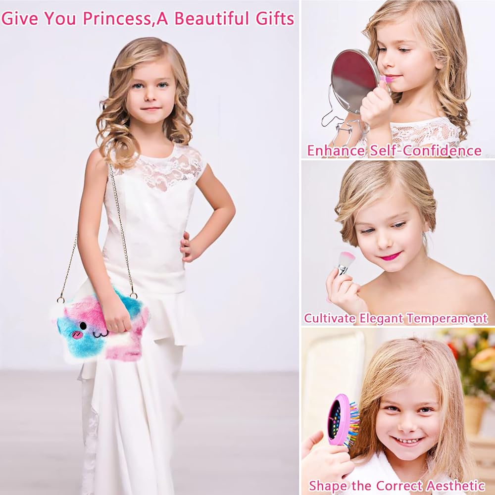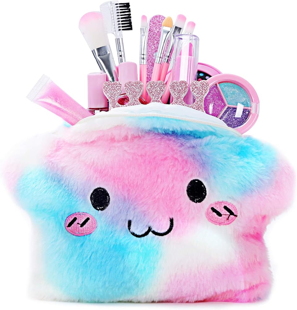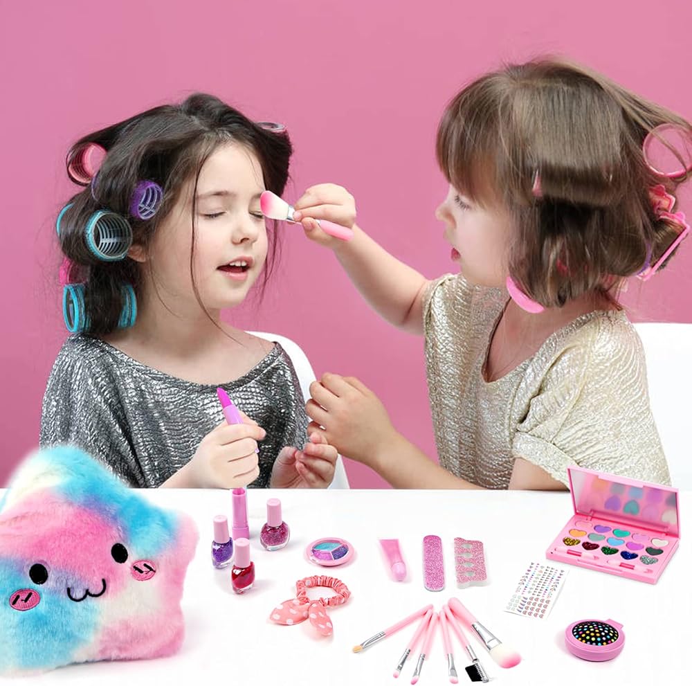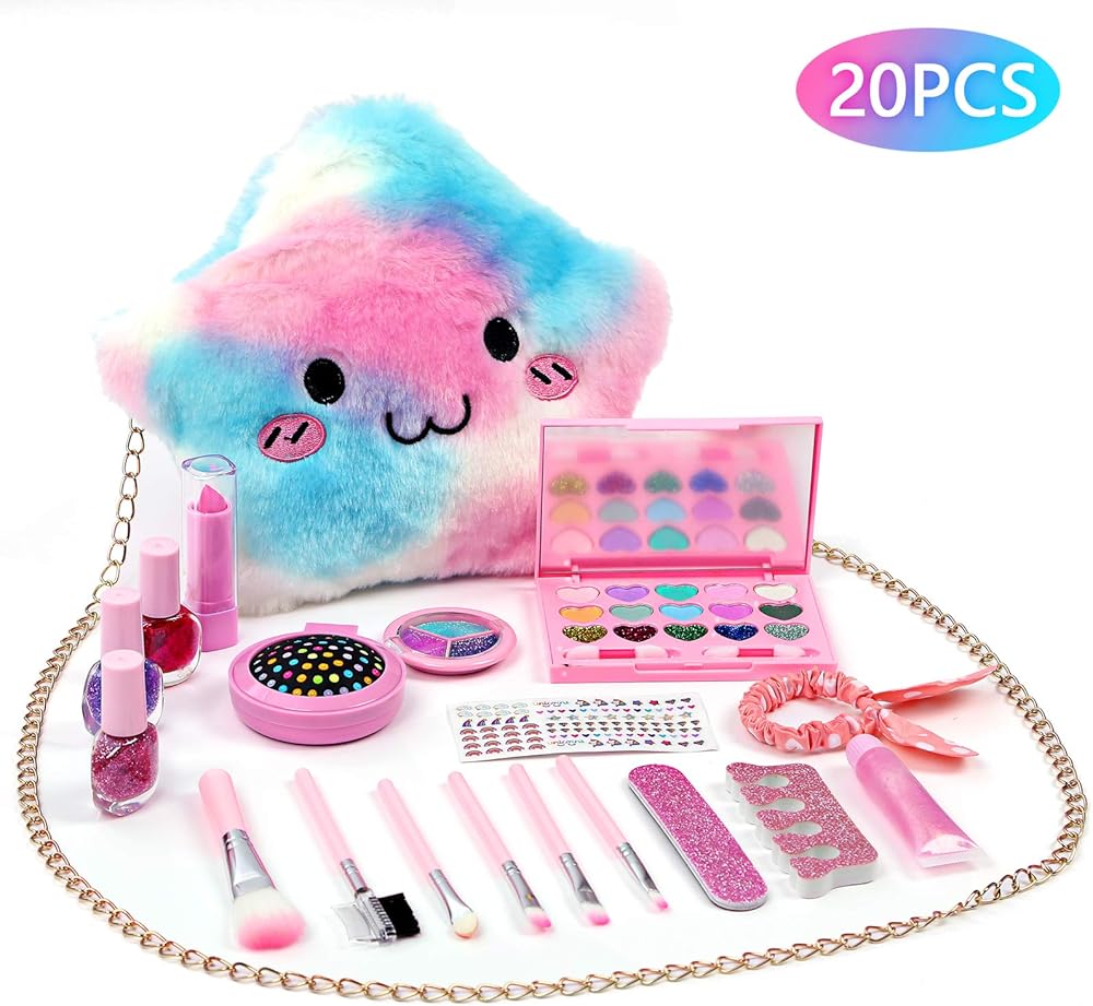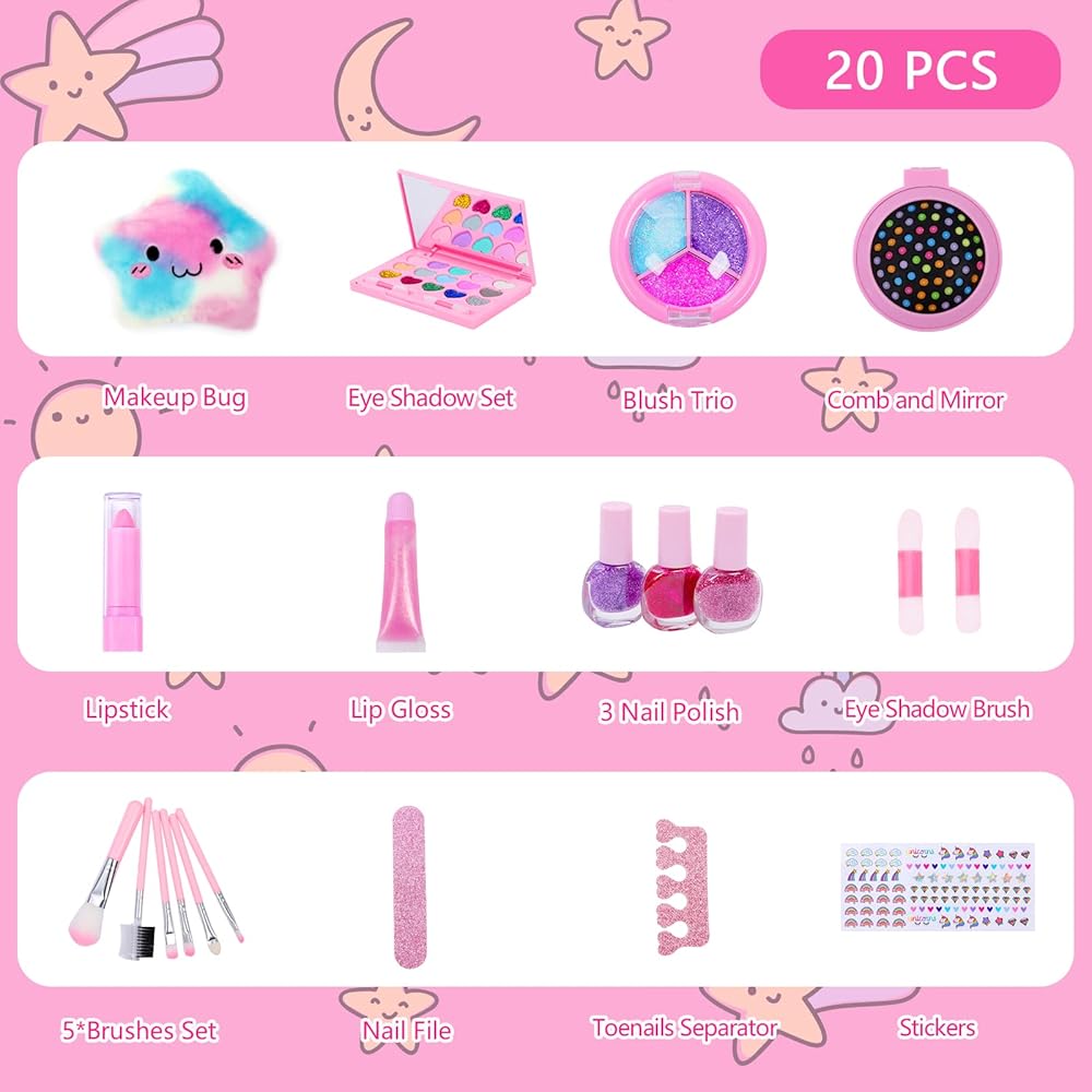 مجموعة مكياج للأطفال للفتيات - 20 قطعة مجموعة مكياج حقيقية للفتيات غير سامة قابلة للغسل للأطفال مع محفظة مستحضرات تجميل للأميرة اللطيفة، ألعاب مكياج لهدايا الفتيات بعمر 4 5 6 7 8 9 سنوات