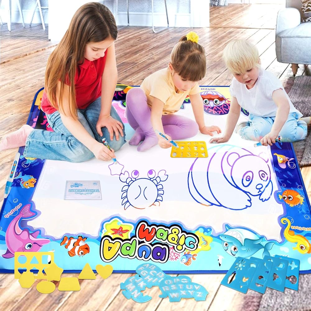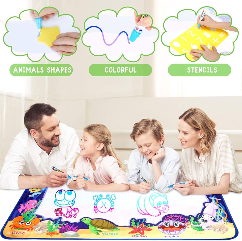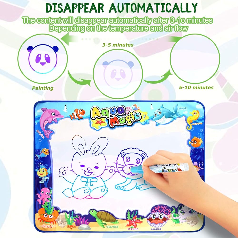 أطفال مستمتعون بالسحر: ستصنع سجادة الرسم المائية الخاصة بنا رسومات رسومات رائعة لإبهار أطفالك. امنح طفلك طفولة آمنة ورائعة مليئة بالألوان؛ يمكنه التعلم أثناء الاستمتاع، طريقة أفضل للترفيه عن الأطفال من الهواتف.