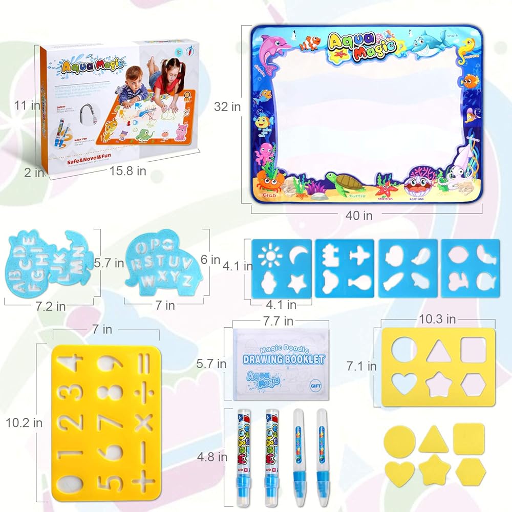 أفكار هدايا رائعة: مصنوعة من قماش غير منسوج صديق للبيئة وعالي الجودة، بساط ادسونير aqua Magic مناسب للفتيات والأولاد بعمر 2 و3 و4 و5 و6 و7 و8 سنوات. هدية رائعة للأطفال الصغار وتتيح لهم الإبداع بأمان والاستمتاع بها مرارًا وتكرارًا!