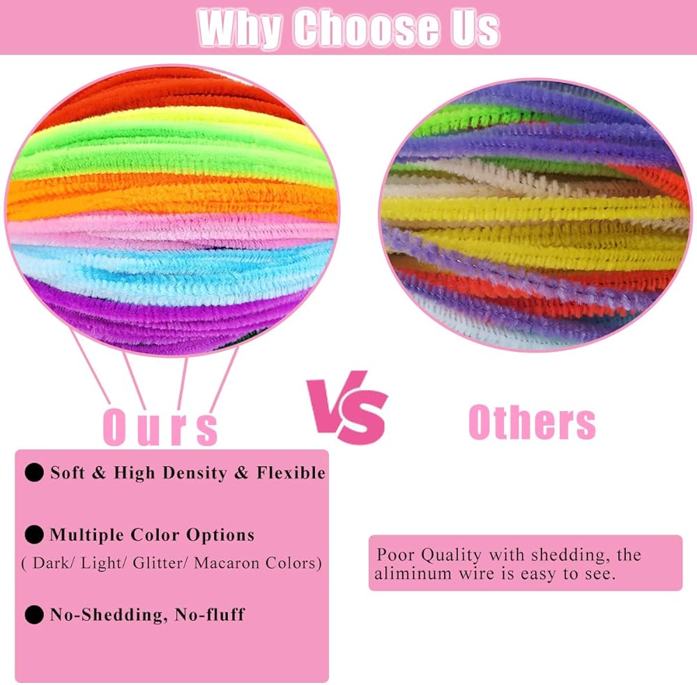 ✅مادة فاخرة: منظفات الأنابيب عالية الجودة الخاصة بنا مصنوعة من أسلاك عالية الجودة وألياف دقيقة أكثر كثافة، وهي مصنوعة بدقة أكثر من العلامات التجارية الأخرى، ولا تتساقط الألياف. ناعمة ومرنة، سهلة الانحناء أو اللف أو الانحناء أو اللف بأشكال مختلفة لتناسب مشاريعك الحرفية المختلفة.