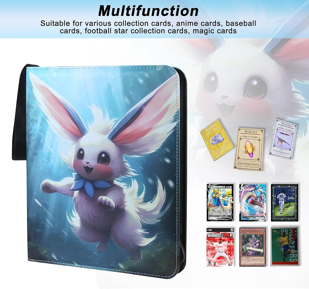 حلم جامعي البطاقات: تم تصميم غلاف البطاقات بشكل رائع، ومصنوع من إسفنج EVA عالي الكثافة وجلد البولي يوريثان، ناعم في اليد وسهل التنظيف. مناسبة لكل جامع البطاقات! تتميز بسحاب متين عالي الجودة لمنع البطاقات من الانزلاق. تصميم حزام المعصم الإضافي يجعل من السهل على الأطفال والكبار حمله.