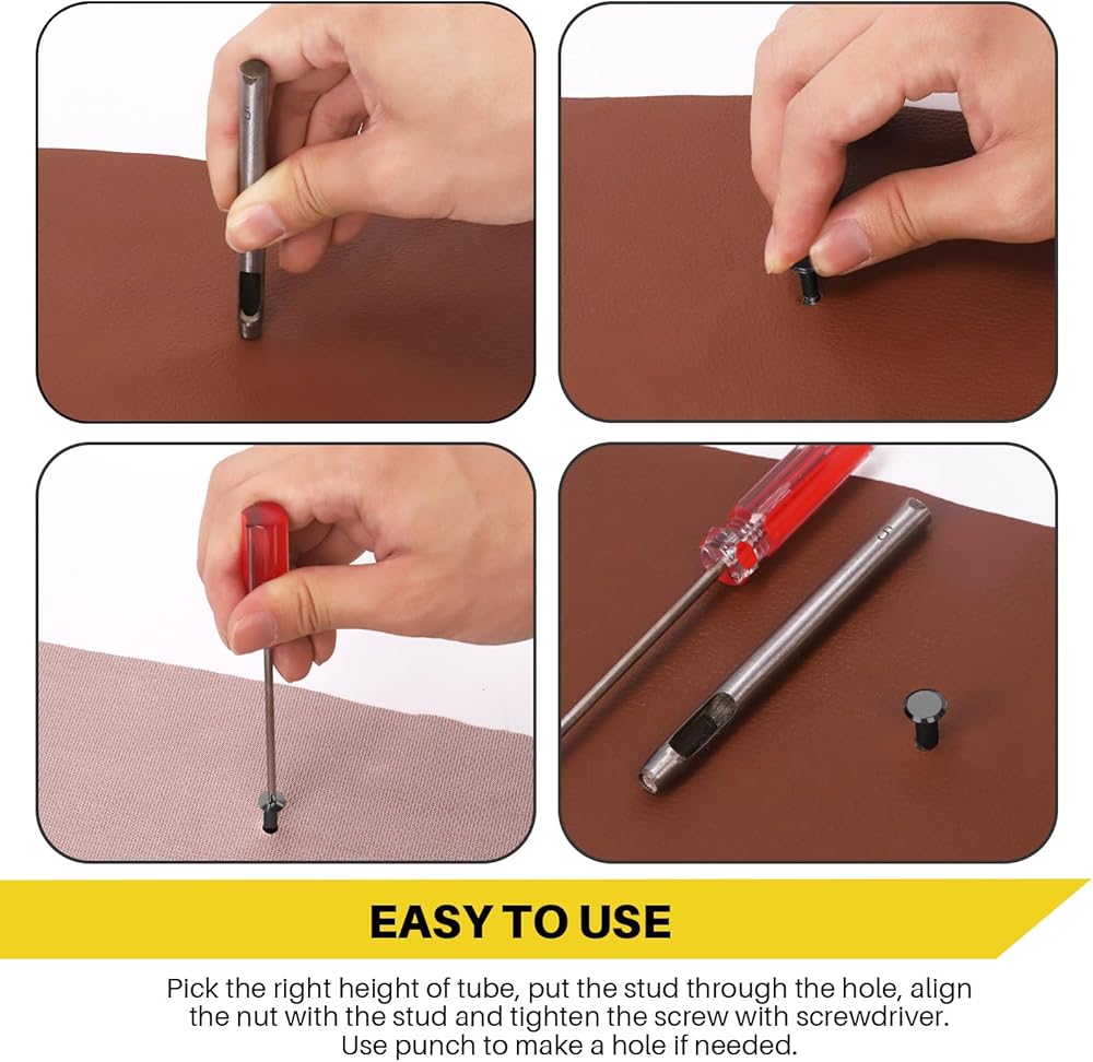 ➹ تأتي مجموعة المسامير الجلدية هذه بأحجام وألوان متعددة للاختيار من بينها الفضي والذهبي والمعدن والبرونزي والنحاس الأحمر العتيق والذهبي الوردي والأسود، لتلبية احتياجاتك اليومية المختلفة المتطابقة.