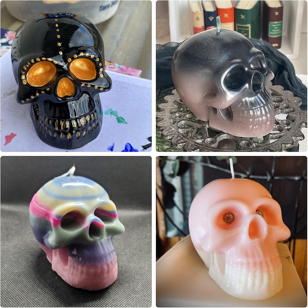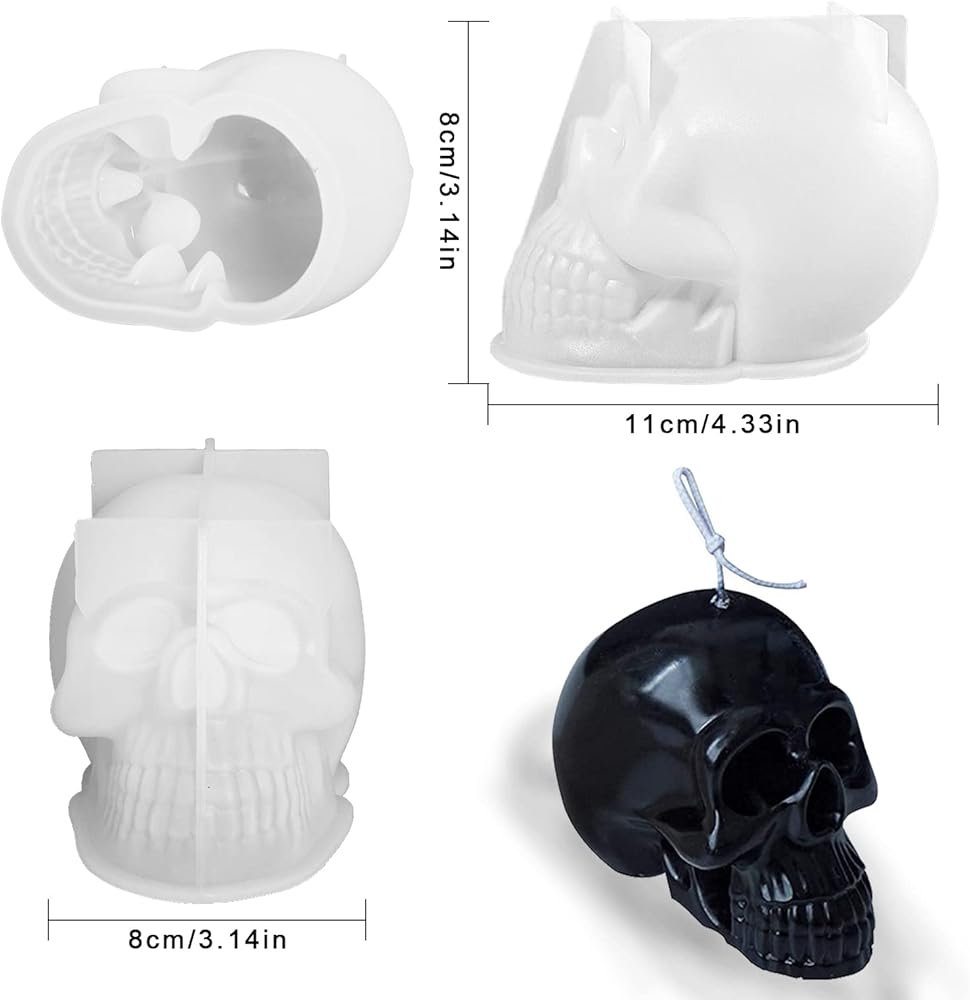 عبوتان من قوالب الشمع على شكل جمجمة من السيليكون، قالب الشمع على شكل هيكل عظمي ثلاثي الأبعاد للشموع، صناعة يدوية، قالب شبح من الراتينج الإيبوكسي، قالب شموع معطرة للحرف في حفلات الهالوين