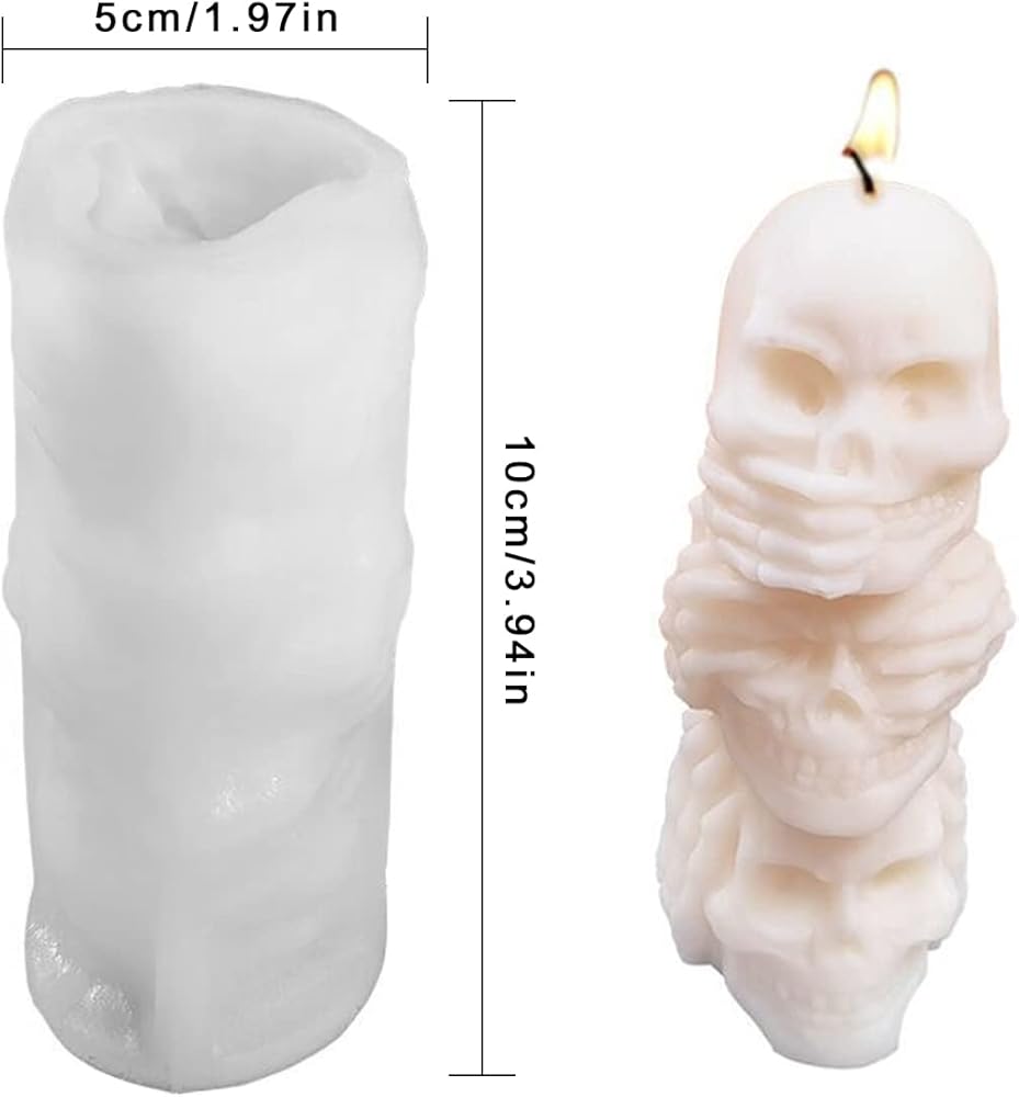 <1> تشمل الحزمة الخاصة بنا: 1 قالب شمعة على شكل جمجمة كبير وقالب شمعة أسطواني "لا تسمع لا ترى لا تتحدث". مع تصميمات عصرية مختلفة، يمكن صنع العديد من الشموع الجميلة للعلاج العطري.