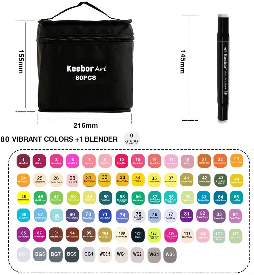 مع 80 لونًا نابضًا بالحياة للاختيار من بينها، توفر هذه المجموعة إمكانيات لا حصر لها لمشاريعك الإبداعية. سواء كنت بحاجة إلى لون جريء أو لافت للنظر أو ظل رقيق للمزج، فإننا نوفر لك ما تحتاجه. ومع حقيبة حمل متينة، يمكنك الحفاظ على أقلام التحديد منظمة ويسهل الوصول إليها.