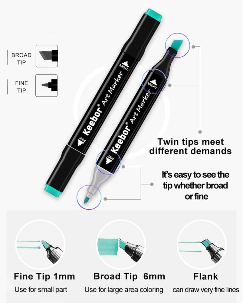 ألوان نابضة بالحياة: أقلام تلوين فنية تعتمد على الكحول للفنانين المحترفين. تشبع الألوان مرتفع ويمكن مزجه وتغطيته بشكل مثالي. تسمح لك بالابتكار بحرية على مواد مختلفة من الورق.