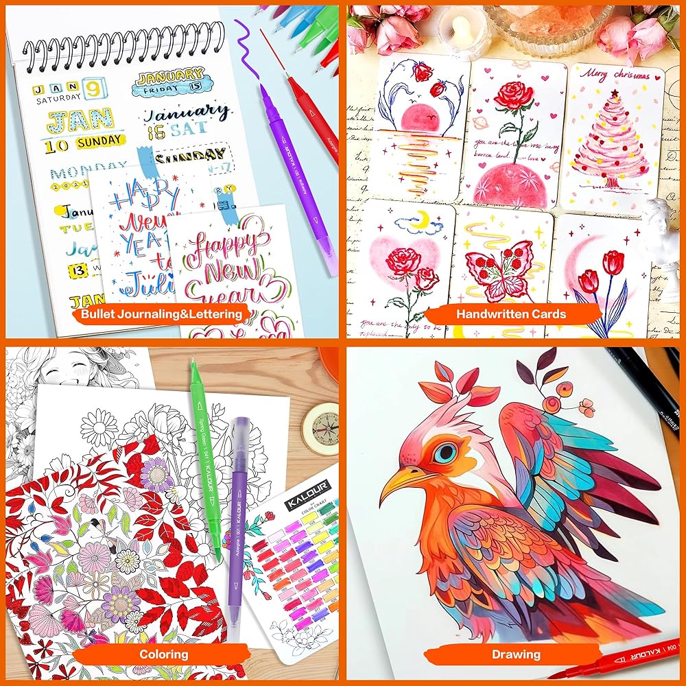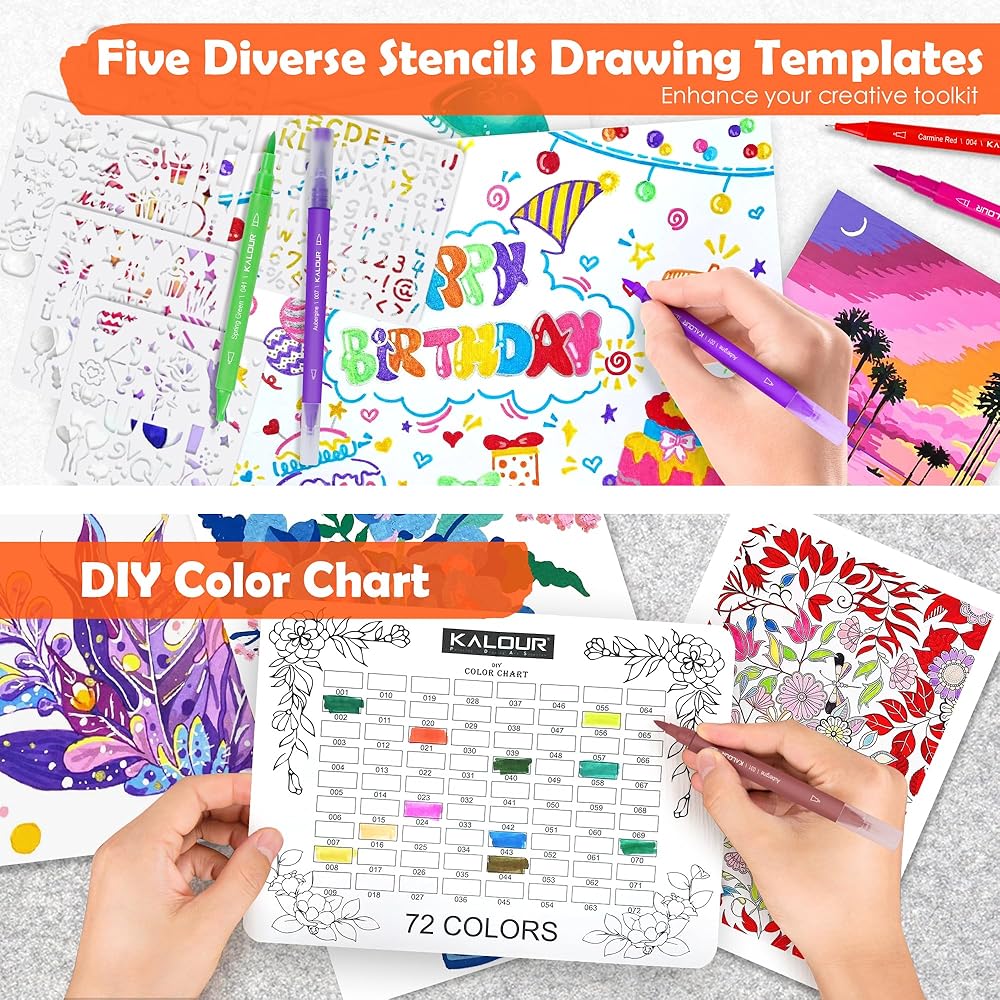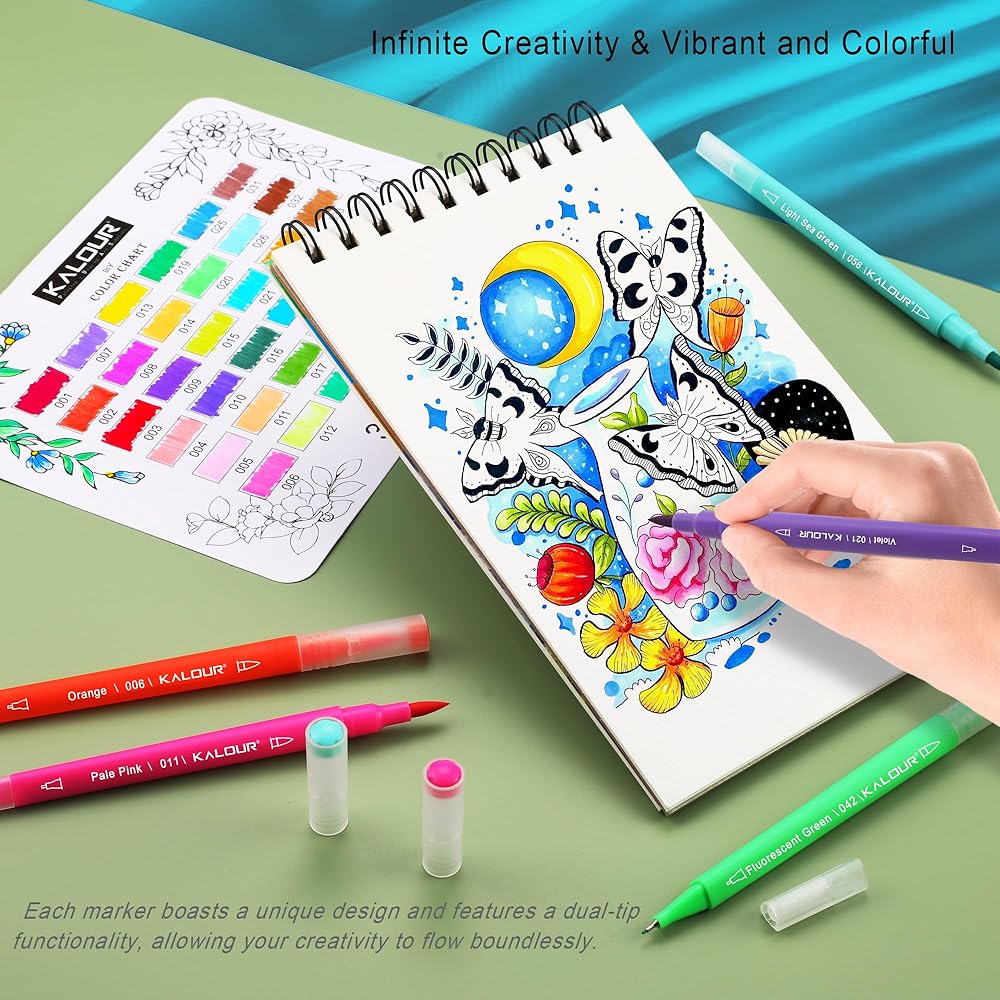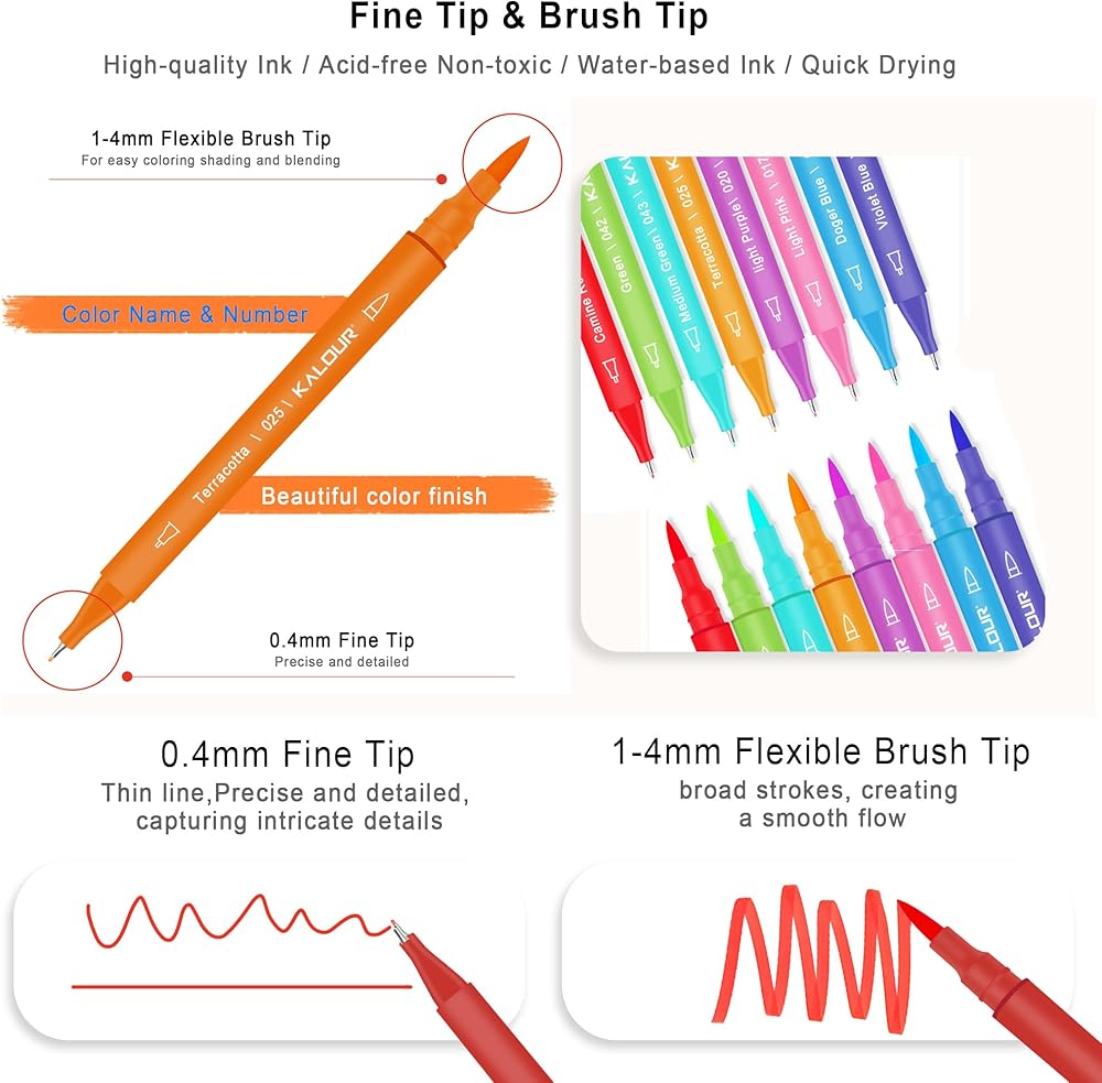 أقلام فرشاة مزدوجة للتلوين من Kalour Art Markers، مجموعة أقلام تحديد ملونة مكونة من 72 فنانًا، مورد فني لقلم رفيع وفرشاة لكتب التلوين للأطفال والكبار، ومذكرات رصاصة، والرسم