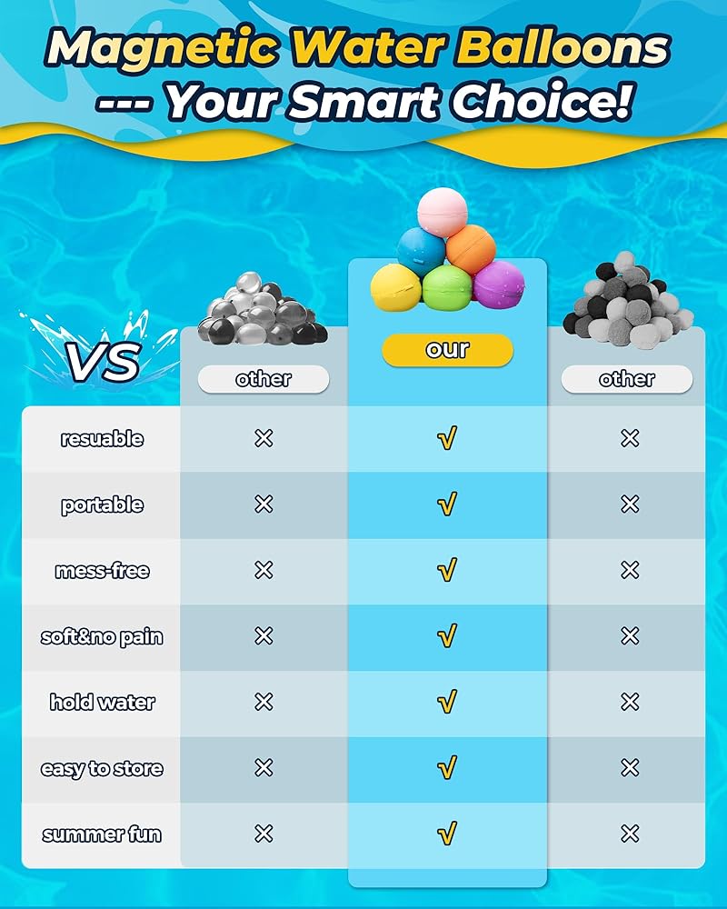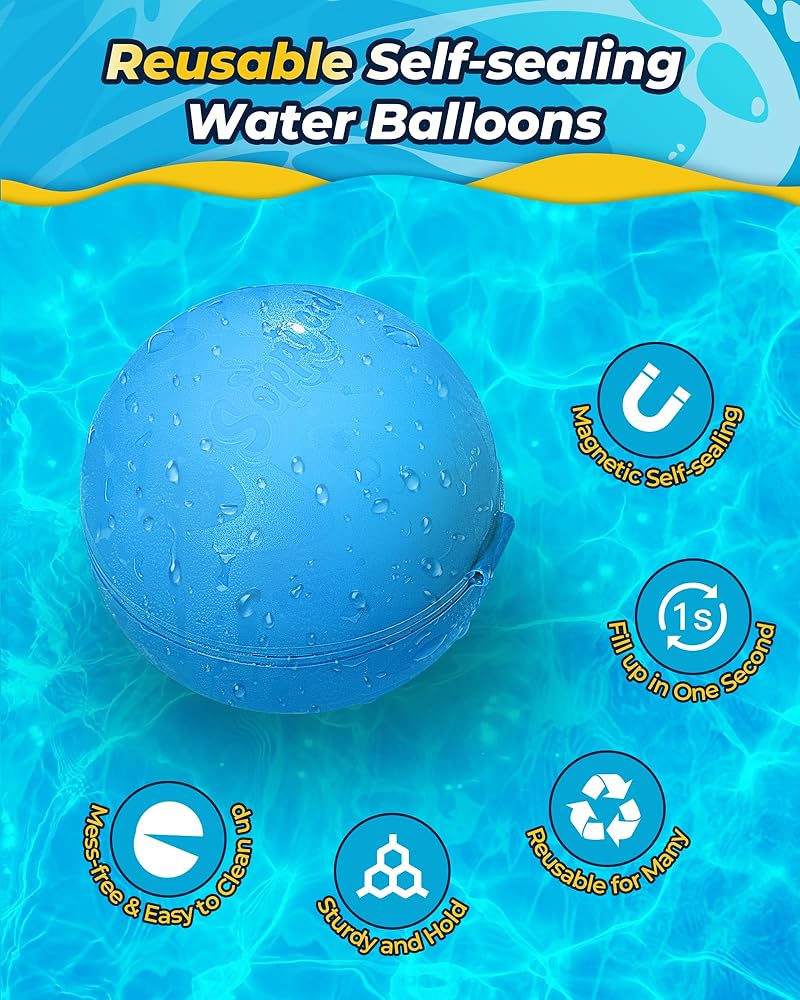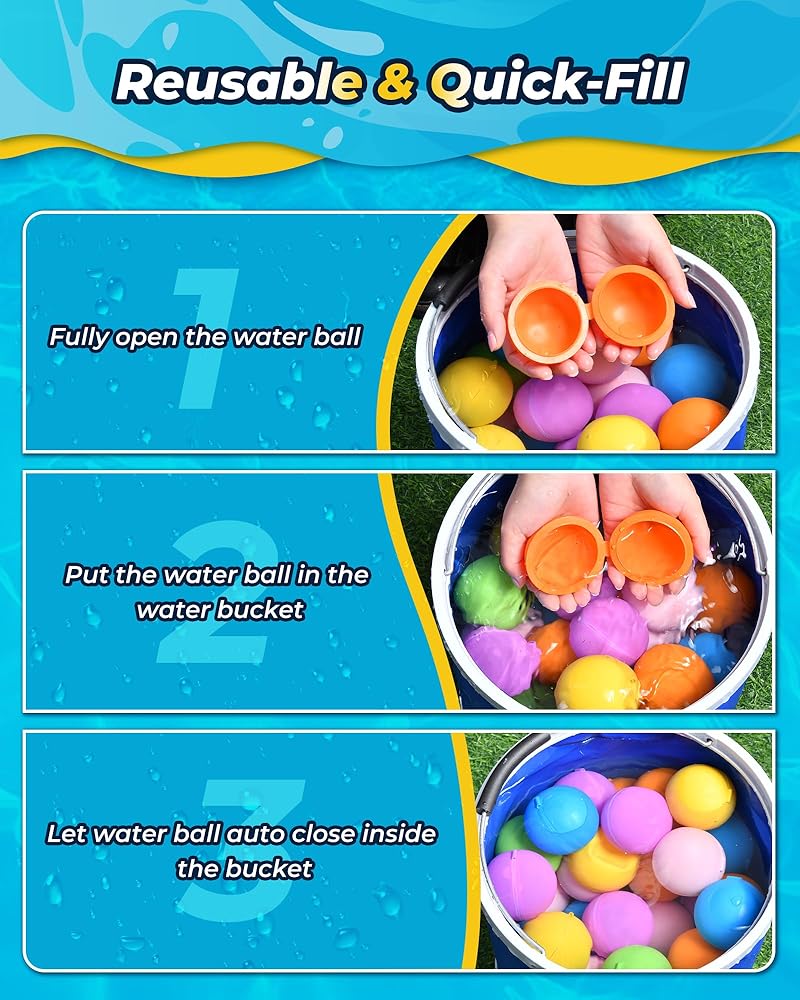 • [The reusable water balls have a magnetic ring that connects two sides together. All you need to do is open the ball and put it in the bucket, the water bombs fill up quickly and close in one second. No need to fill with the water hose. Super easy to fill and portable anywhere for summer outdoor water features.