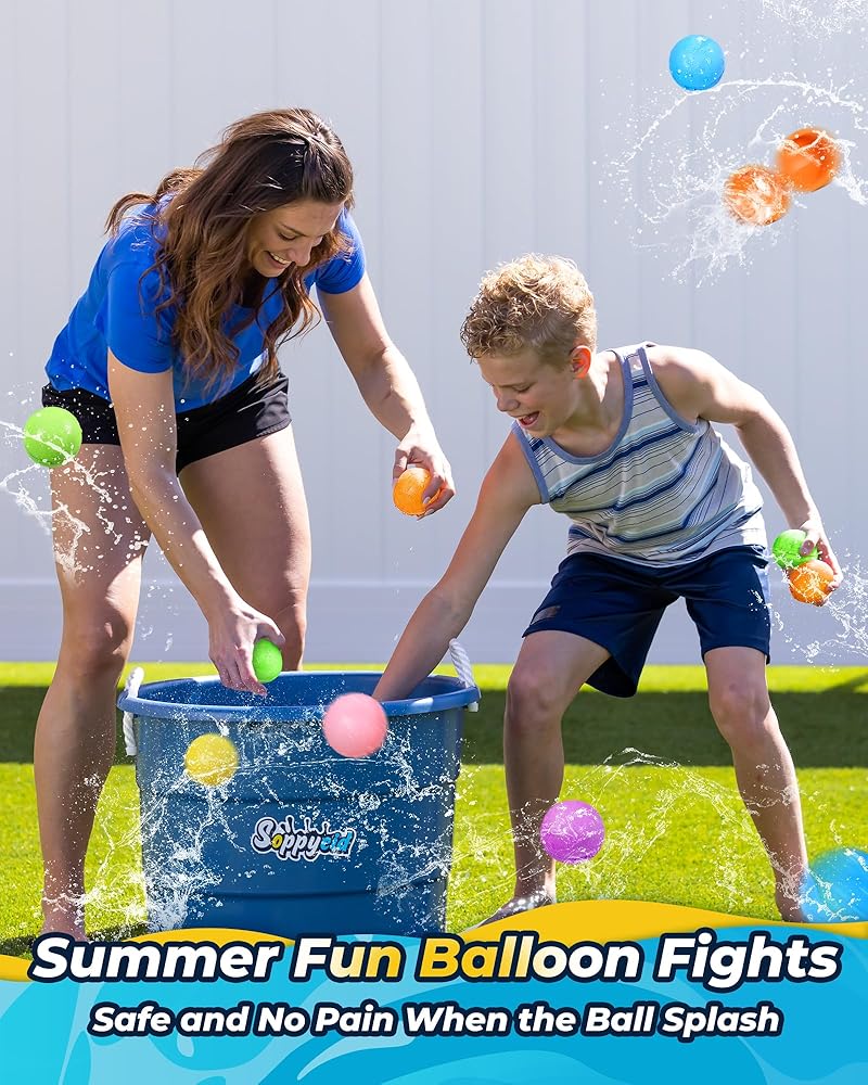 • [Water Bombs Stay Filled With Water] No more headaches because of the broken or leaky old style water bombs. Our new reusable water bombs stay filled with water for more than 48 hours without leaking. You can prepare early and have fun on the second day. The easy to fill water balloons can make a nice splash. The Splash Ball is soft and safe when it hits someone.