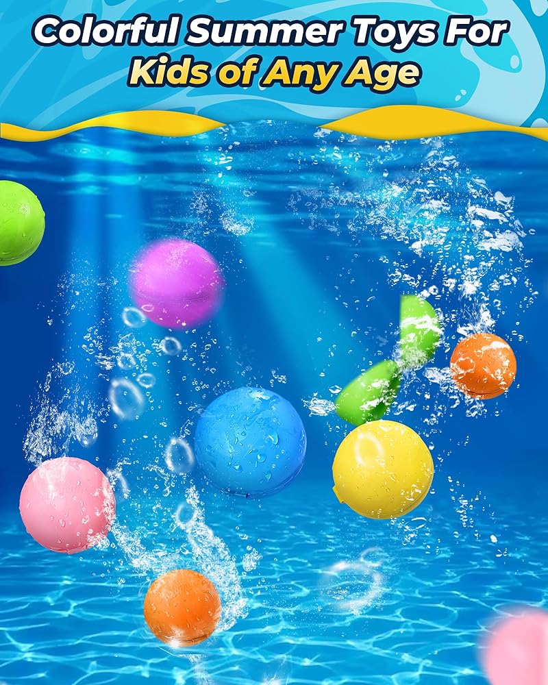 • [Mess-free and summer water fun] No balloon fragments or pollution. The reusable water balloons for the pool are discreet and do not need to be tidy. You just need to pick up the water ball and store it in the mesh bag to use it next time after the water battle outdoors. It is a good gift for 3-12 years old children on birthdays, Christmas, New Year, Children's Day and Thanksgiving.