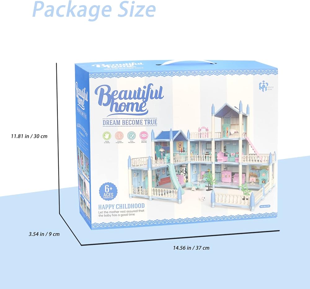 مادة آمنة وفاخرة: بيت الدمية مصنوع من بلاستيك أكريلونتريل بوتادين ستايرين الخالي من البيسفينول وغير السام، ومواد عالية الجودة وآمنة. الحواف ناعمة ولا تسبب نتوءات، ولن يصاب الأطفال أثناء اللعب.