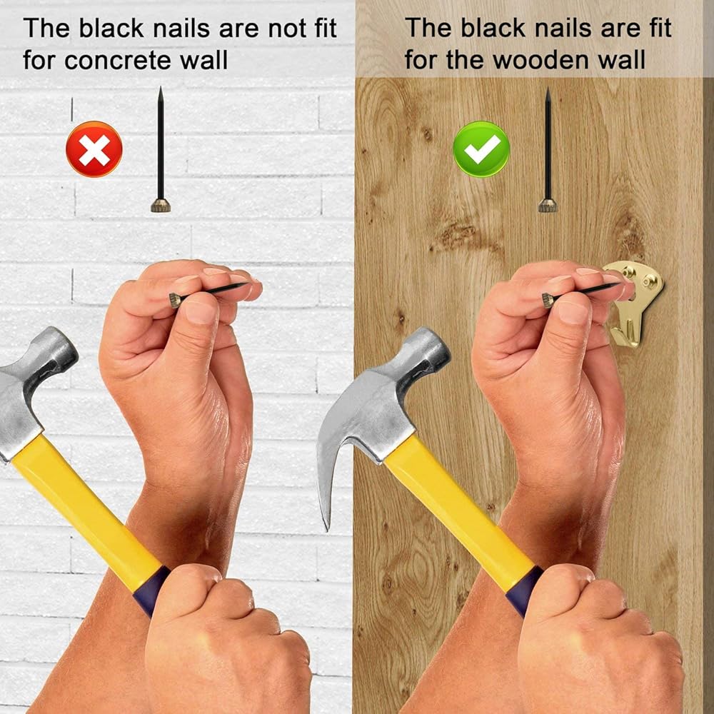 Golden nails are suitable for the concrete wall, the black nails are work with plaster or dry wall surface but not fit for concrete wall.