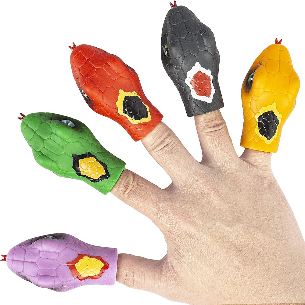 • Finger puppet set includes 5 snake heads. Finger puppet size is suitable for children and adults.