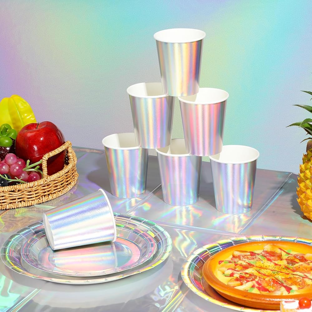 Reliable Material: Crafted from high-quality, food-grade paper materials, our iridescent party decorations are reliable and safe to use. These holographic table supplies will elevate the overall look of your party, adding a touch of elegance to the celebration.