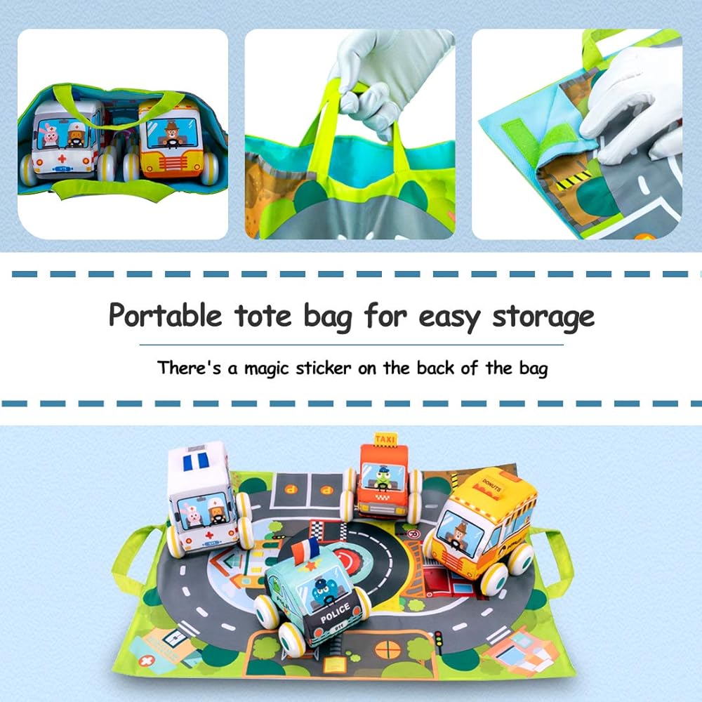 مجموعة ألعاب سيارة قابلة للسحب للخلف للأطفال من يو إن إتش مع حصيرة لعب (حقيبة تخزين)، للأطفال الذين تتراوح أعمارهم بين 1 و2 و3 سنوات