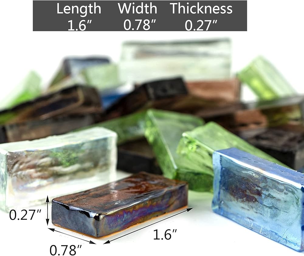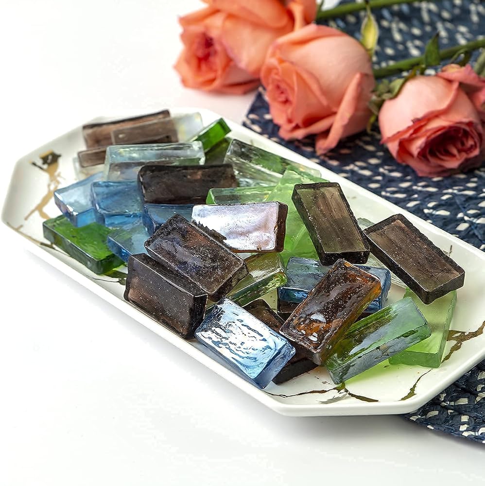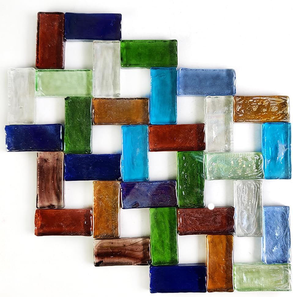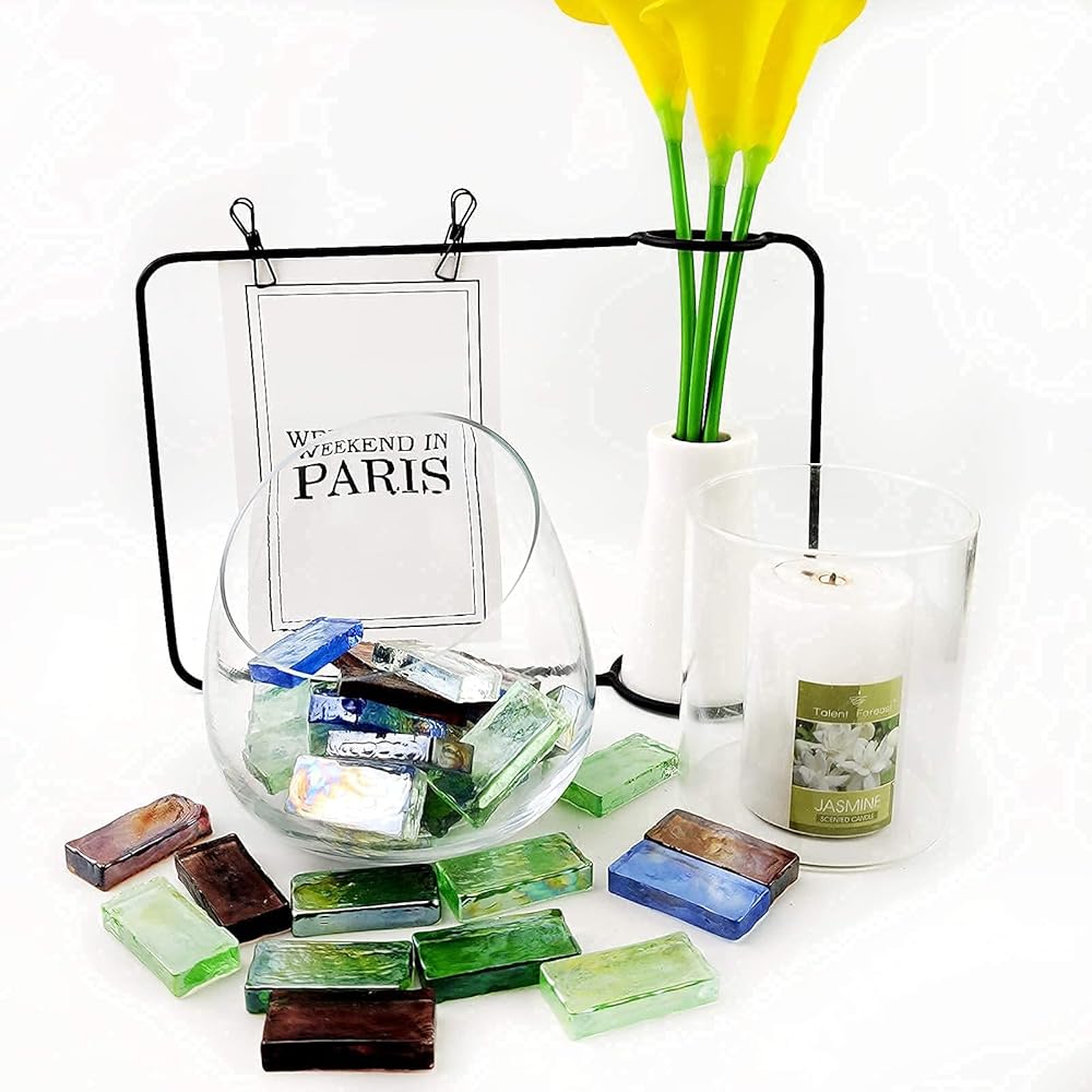HappyFiller 19 Oz فسيفساء بلاط صفائح زجاجية ملونة كبيرة الحجم 2 × 4 سم للحرف اليدوية، باكسبلاش، صناعة طاولة القهوة، قطعة زجاجية مستطيلة، ديكور جدار الحمام الداخلي والخارجي، المشاريع